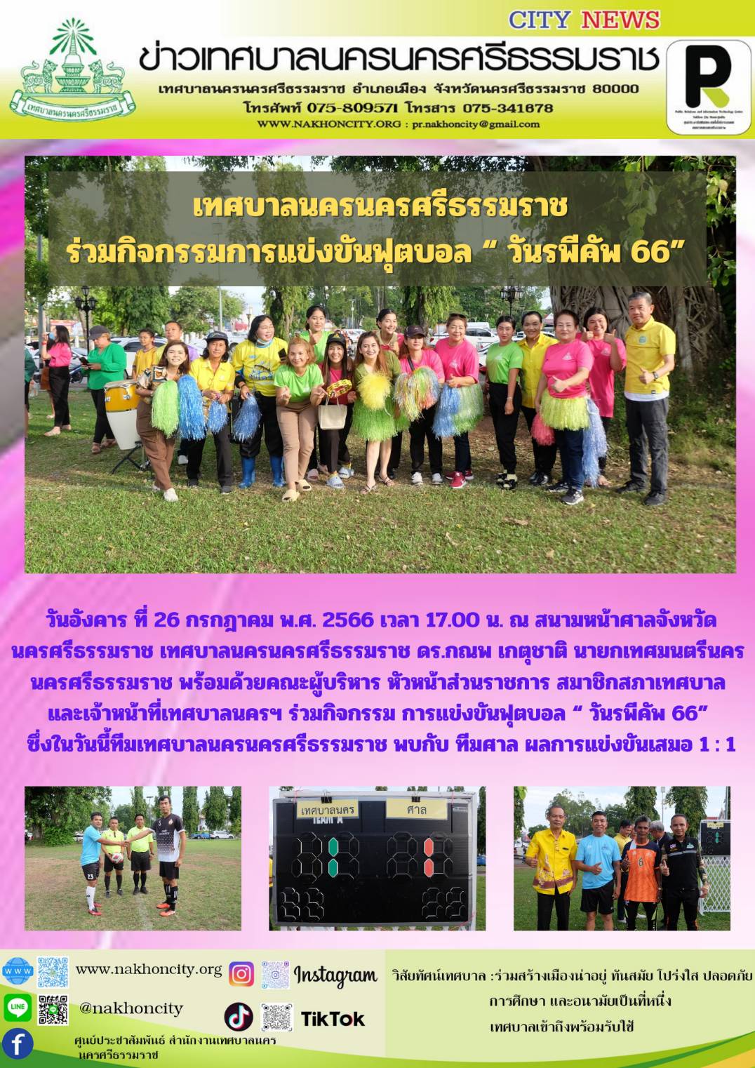 เทศบาลนครนครศรีธรรมราช ร่วมกิจกรรม การแข่งขันฟุตบอล “ วันรพีคัพ 66” |