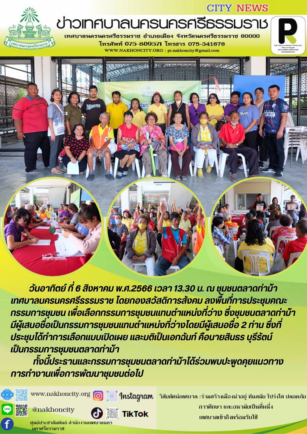 เทศบาลนครนครศรีธรรมราช โดยกองสวัสดิการสังคม ลงพื้นที่การประชุมคณะกรรมการชุมชนตลาดท่าม้า เพื่อเลือกกรรมการชุมชนแทนตำแหน่งที่ว่าง |
