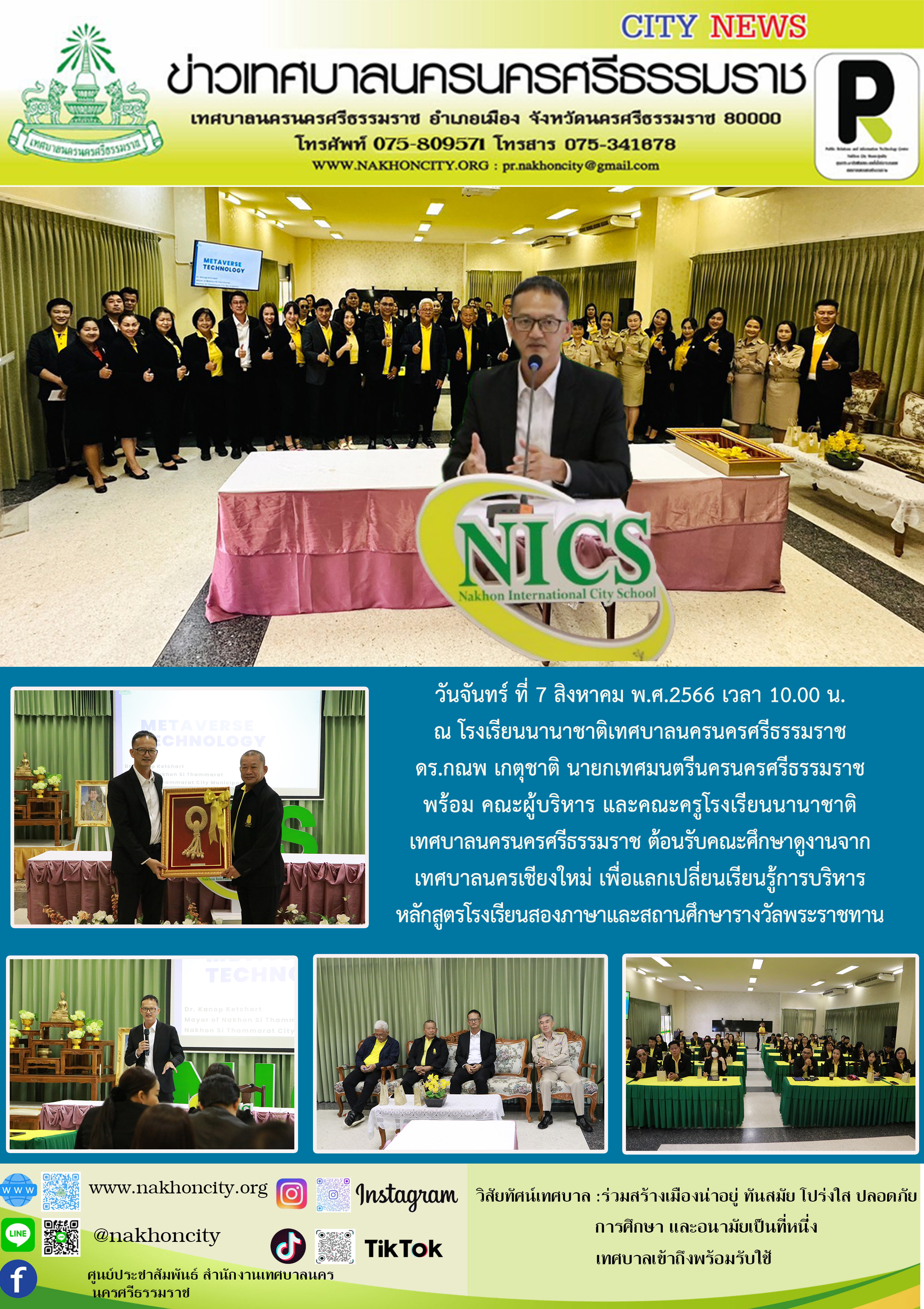 ดร.กณพ เกตุชาติ นายกเทศมนตรีนครนครศรีธรรมราช พร้อม คณะผู้บริหาร และคณะครูโรงเรียนนานาชาติเทศบาลนครนครศรีธรรมราช ต้อนรับคณะศึกษาดูงานจาก เทศบาลนครเชียงใหม่ |