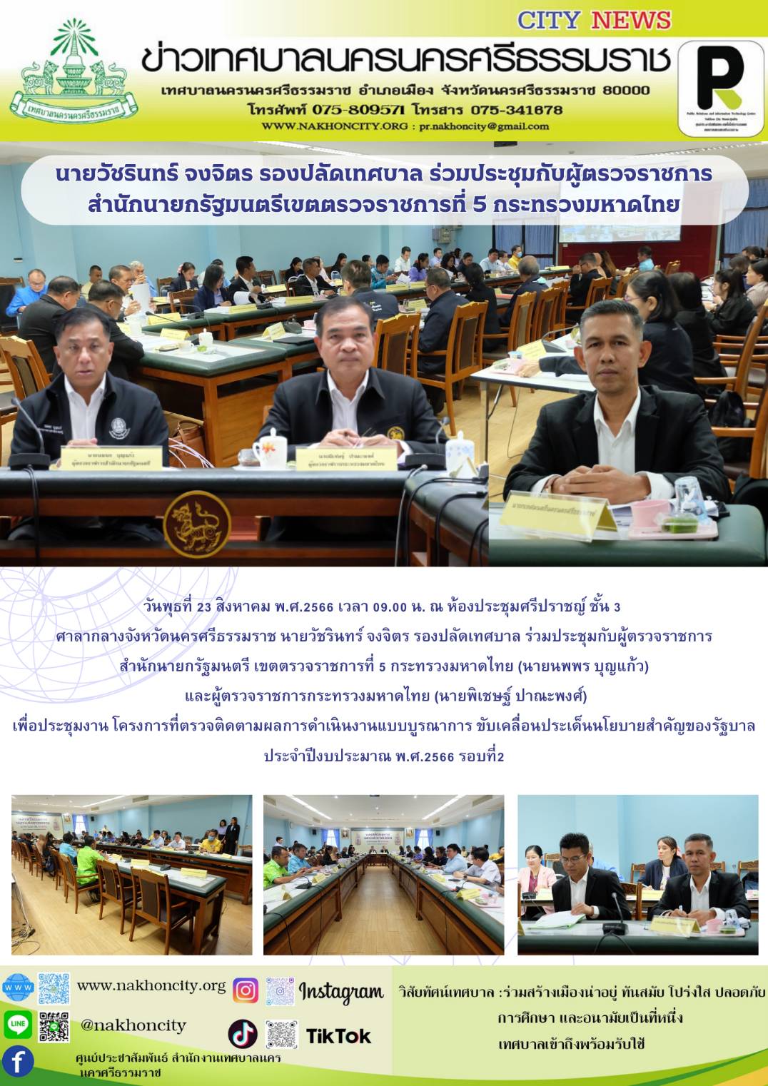 วันพุธที่ 23 สิงหาคม พ.ศ.2566 เวลา 09.00 น. ณ ห้องประชุมศรีปราชญ์ ชั้น 3 ศาลากลางจังหวัดนครศรีธรรมราช นายวัชรินทร์ จงจิตร รองปลัดเทศบาล ร่วมประชุมกับผู้ตรวจราชการสำนักนายกรัฐมนตรี เขตตรวจราชการที่ 5 กระทรวงมหาดไทย (นายนพพร บุญแก้ว) และผู้ตรวจราชการกระทรวงมหาดไทย (นายพิเชษฐ์ ปาณะพงศ์) |