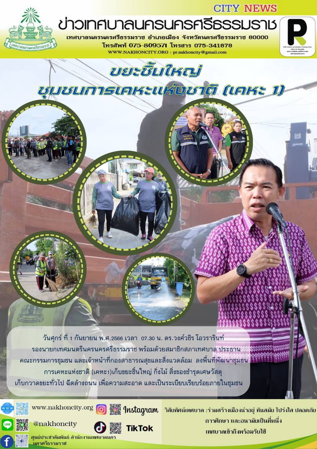 ดร.วงศ์วชิร โอวรารินท์ รองนายกเทศมนตรีนครนครศรีธรรมราช นำเจ้าหน้าที่กองสาธารณสุขและสิ่งแวดล้อม ลงพื้นที่เก็บขยะชิ้นใหญ่ ชุมชนการเคหะแห่งชาติ (เคหะ1) |