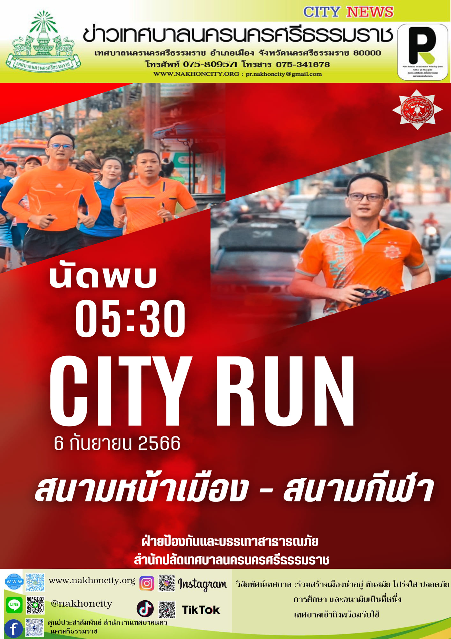 เทศบาลนครนครศรีธรรมราช ขอเชิญชวนประชาชนร่วมกิจกรรม "CITY RUN" วันพุธที่ 6 กันยายน 2566 |