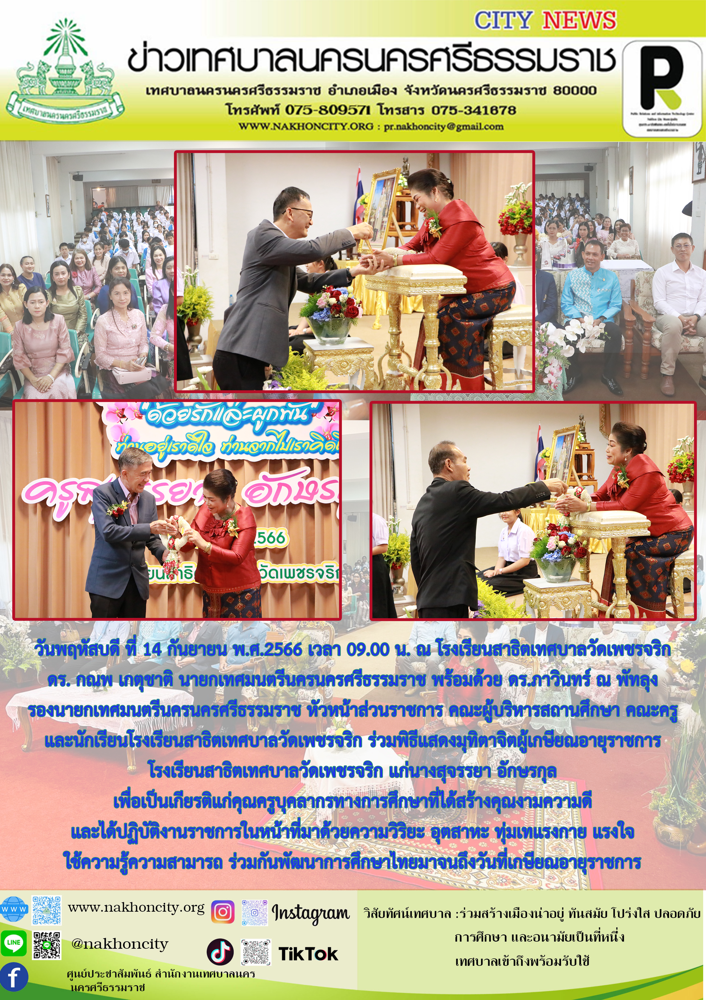 วันพฤหัสบดี ที่ 14 กันยายน พ.ศ.2566 เวลา 09.00 น. ณ โรงเรียนสาธิตเทศบาลวัดเพชรจริก ภาพ//ข่าว//ไกรสิทธิ |