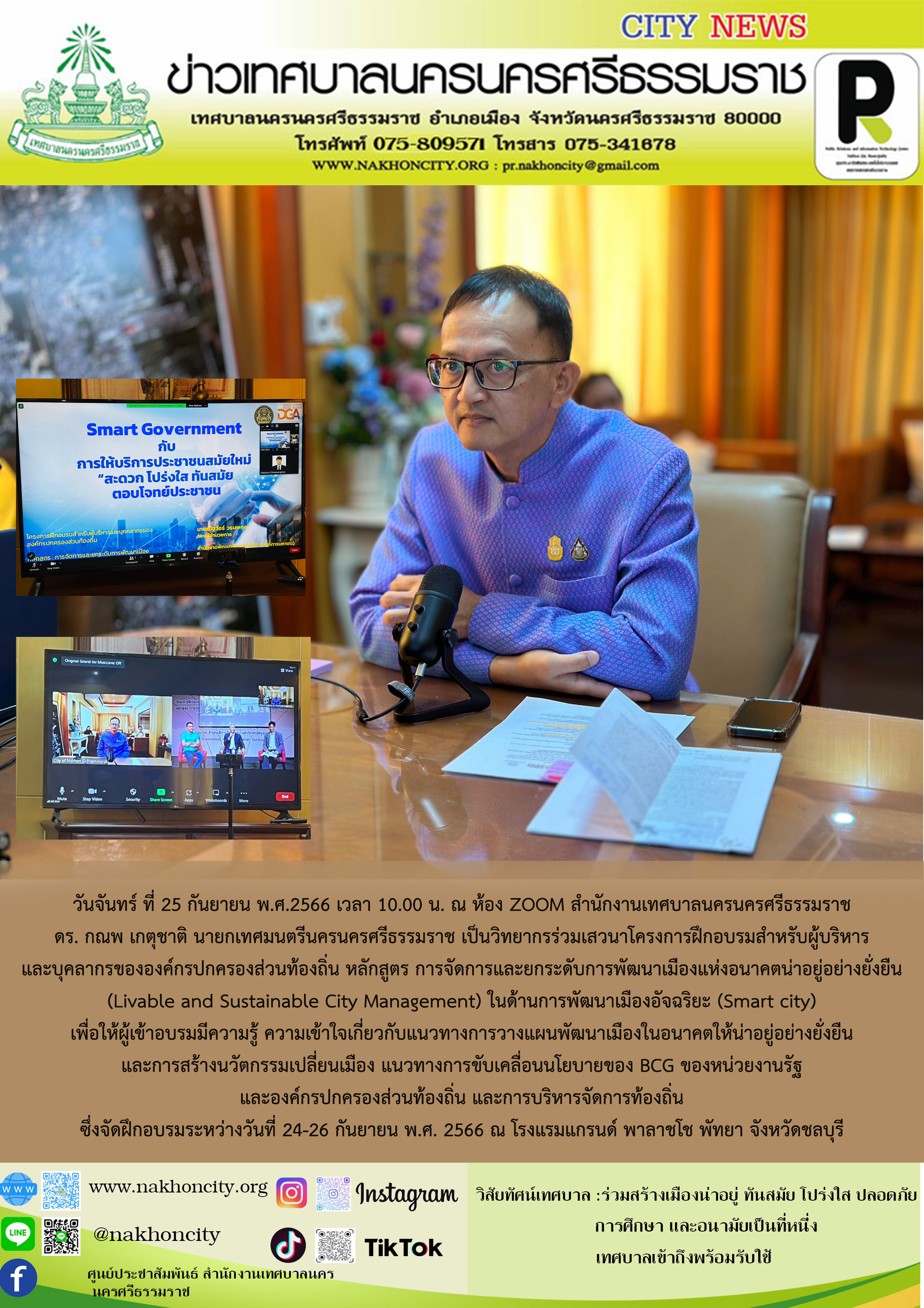 วันจันทร์ ที่ 25 กันยายน พ.ศ.2566 เวลา 10.00 น. ณ ห้อง ZOOM สำนักงานเทศบาลนครนครศรีธรรมราช ภาพ//ข่าว//ไกรสิทธิ |