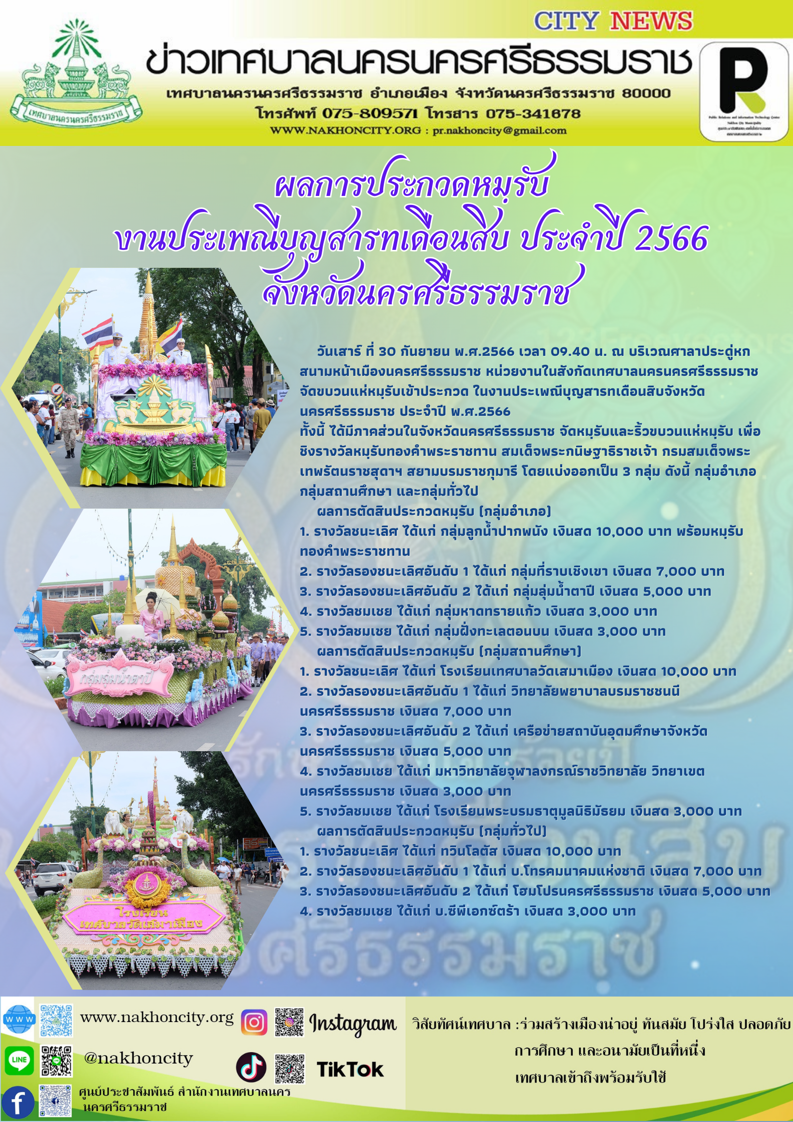 หน่วยงานในสังกัดเทศบาลนครนครศรีธรรมราช จัดขบวนแห่หมฺรับเข้าประกวด ในงานประเพณีบุญสารทเดือนสิบ จังหวัดนครศรีธรรมราช ประจำปี พ.ศ.2566 |