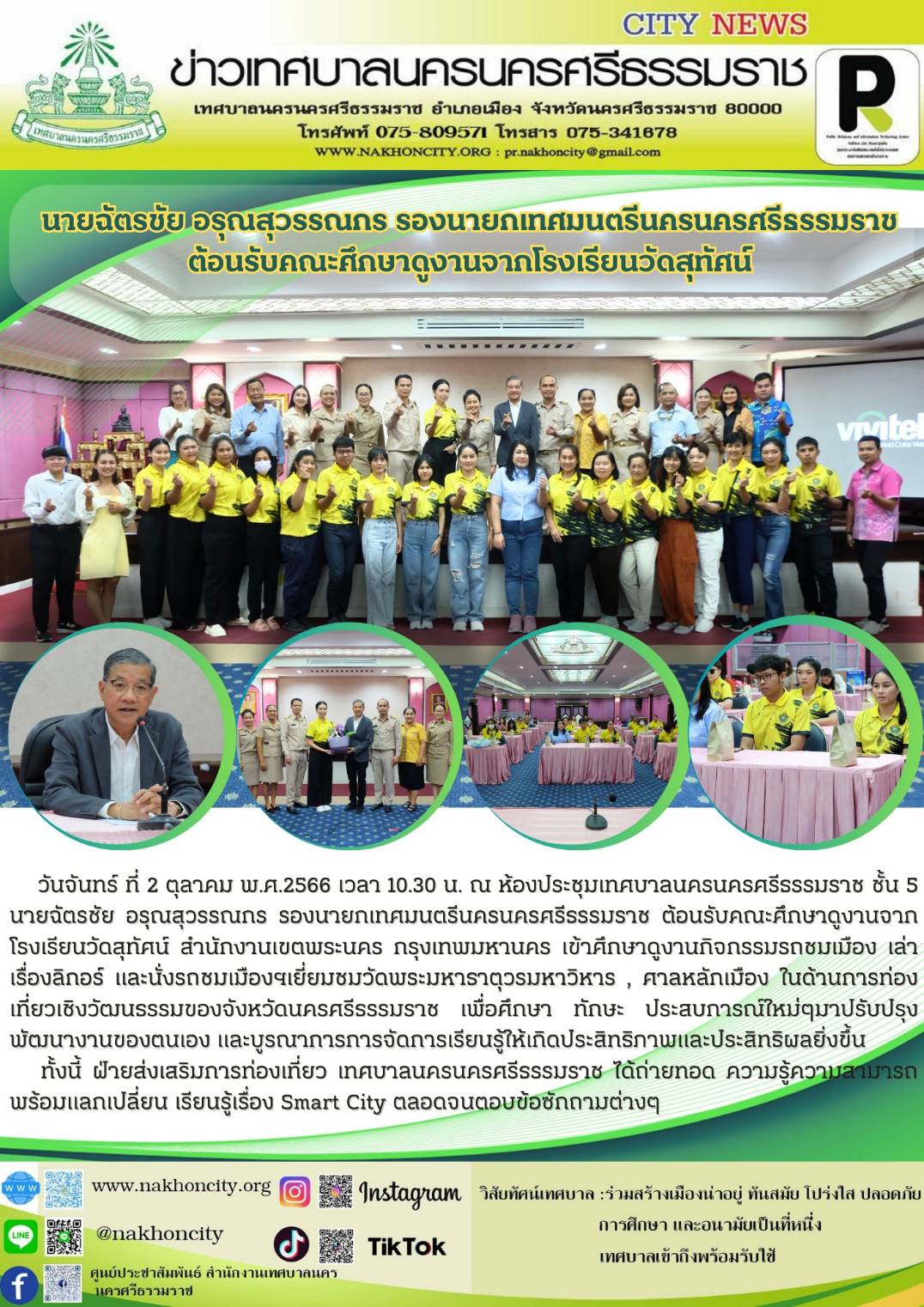 นายฉัตรชัย อรุณสุวรรณกร รองนายกเทศมนตรีนครนครศรีธรรมราช ต้อนรับคณะศึกษาดูงานจากโรงเรียนวัดสุทัศน์ |