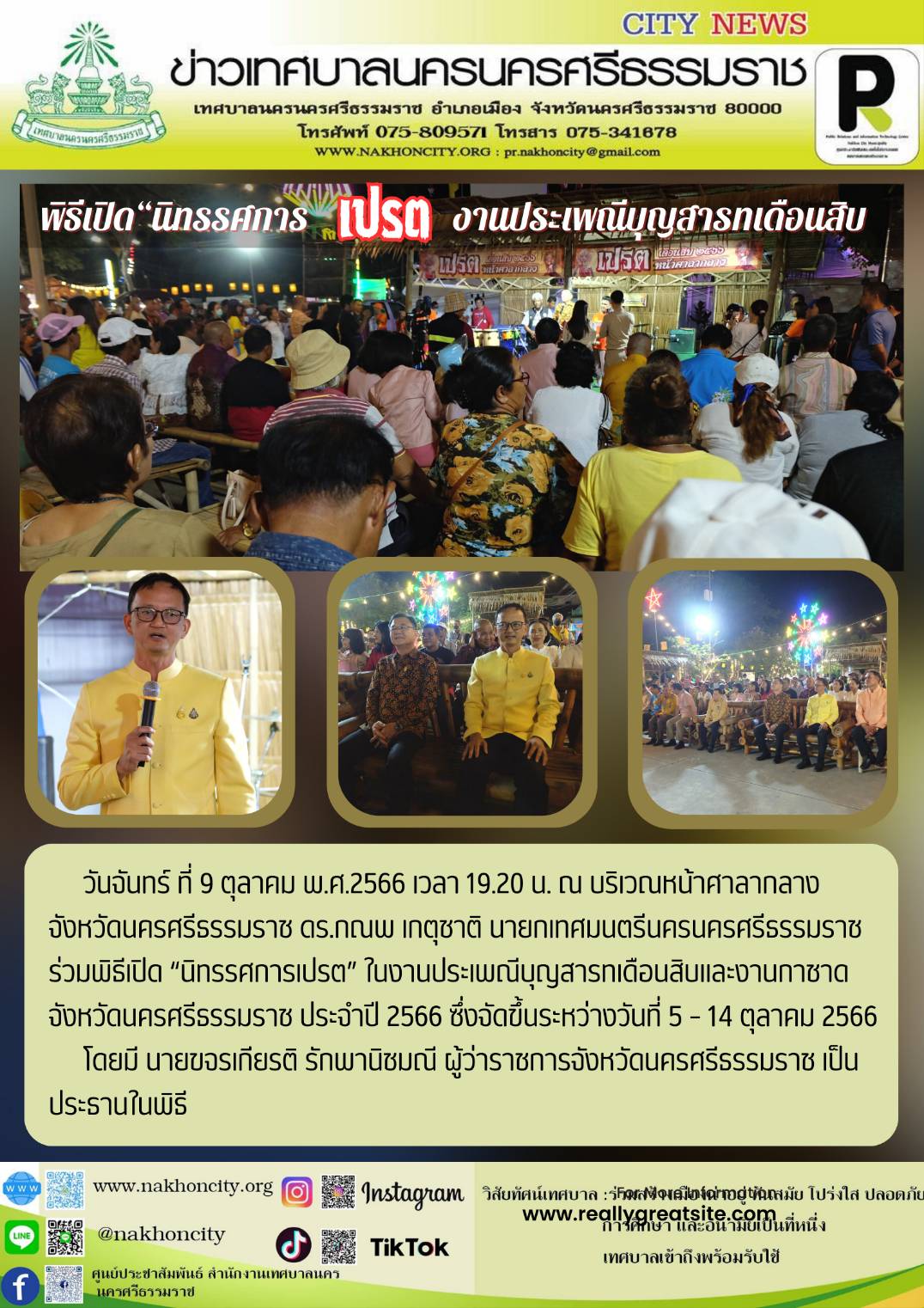 ดร.กณพ เกตุชาติ นายกเทศมนตรีนครนครศรีธรรมราช ร่วมพิธีเปิด “นิทรรศการเปรต” ในงานประเพณีบุญสารทเดือนสิบและงานกาชาดจังหวัดนครศรีธรรมราช ประจำปี 2566 |