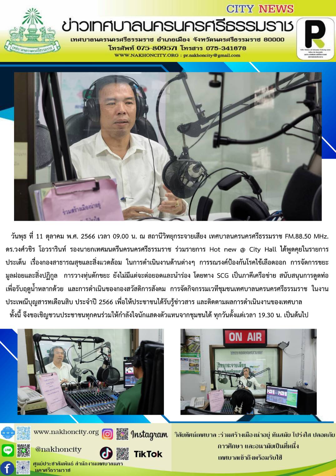 ดร.วงศ์วชิร โอวรารินท์ รองนายกเทศมนตรีนครนครศรีธรรมราช ร่วมรายการ Hot new @ City Hall |