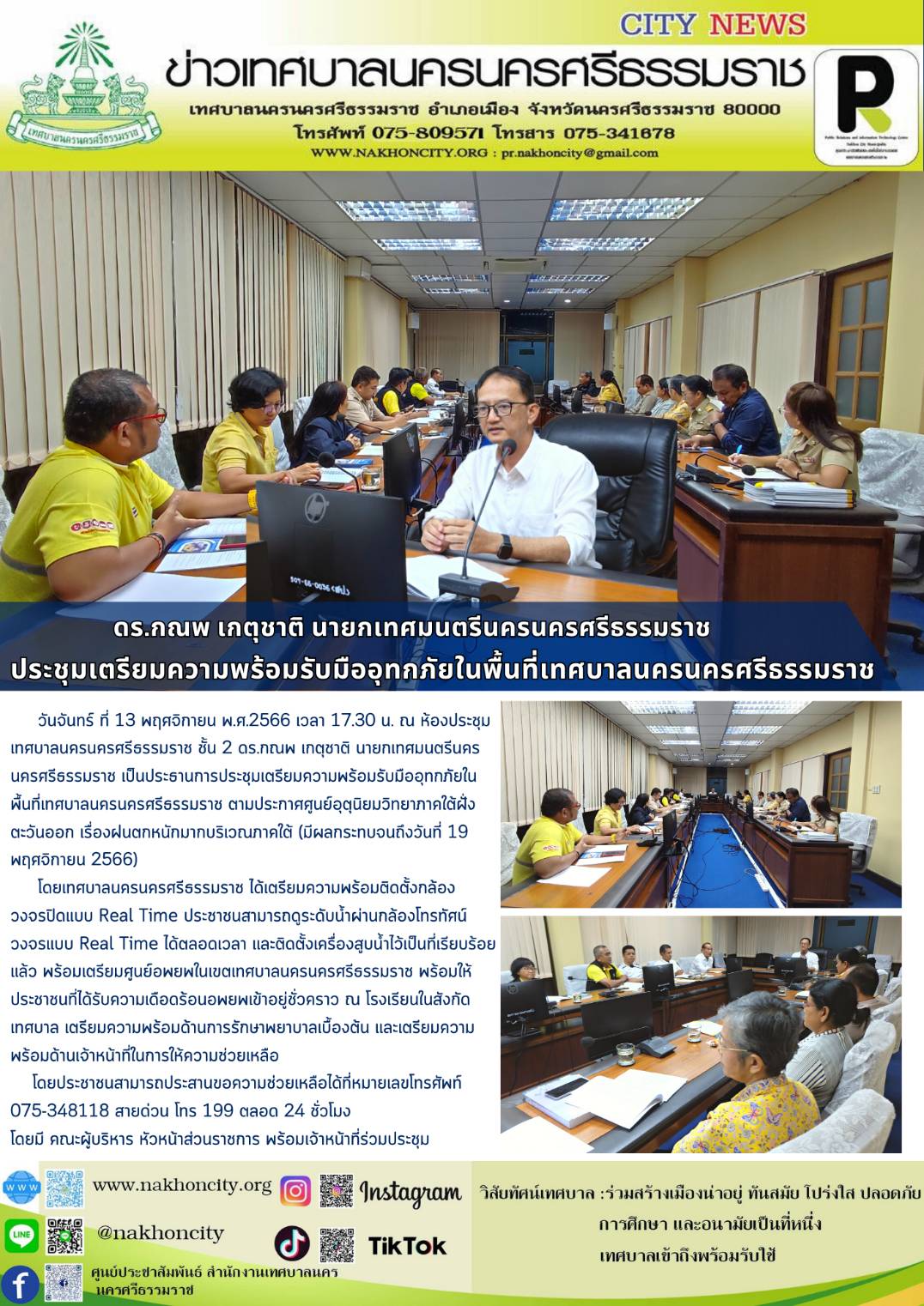 ดร.กณพ เกตุชาติ นายกเทศมนตรีนครนครศรีธรรมราช เป็นประธานการประชุมเตรียมความพร้อมรับมืออุทกภัยในพื้นที่เทศบาลนครนครศรีธรรมราช |