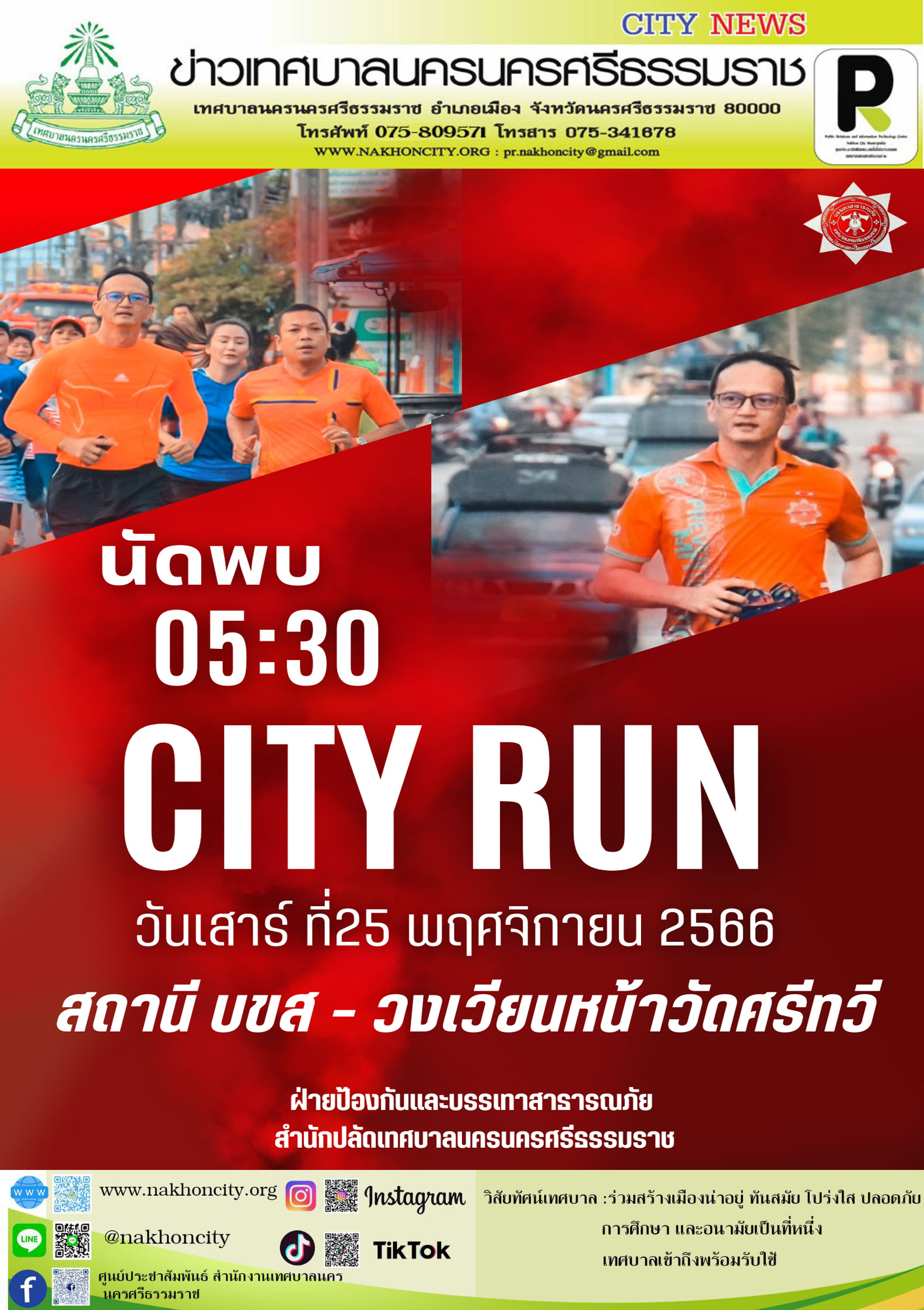 เทศบาลนครนครศรีธรรมราช เชิญชวนประชาชน ร่วมวิ่งออกกำลังกาย ทุกเช้าวันเสาร์ กับกิจกรรม "City Run" |
