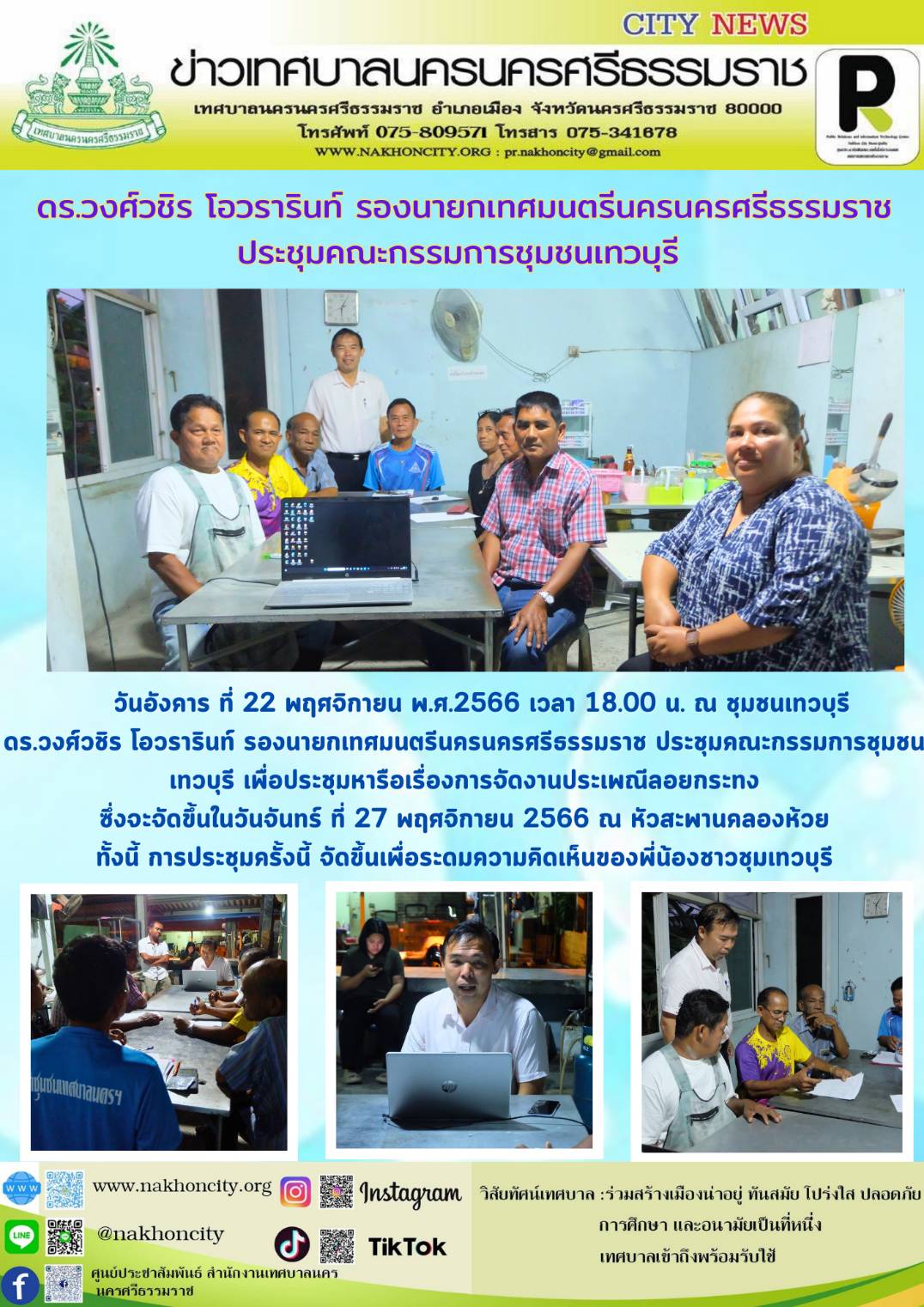 ดร.วงศ์วชิร โอวรารินท์ รองนายกเทศมนตรีนครนครศรีธรรมราช ประชุมคณะกรรมการชุมชนเทวบุรี |