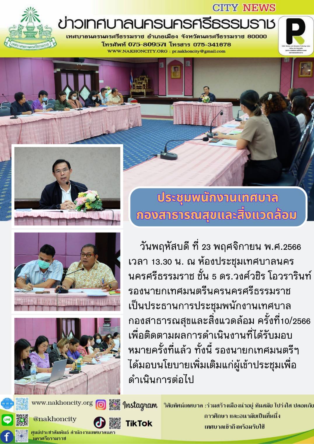 ดร.วงศ์วชิร โอวรารินท์ รองนายกเทศมนตรีนครนครศรีธรรมราช เป็นประธานการประชุมพนักงานเทศบาล กองสาธารณสุขและสิ่งแวดล้อม ครั้งที่ 10/2566 |