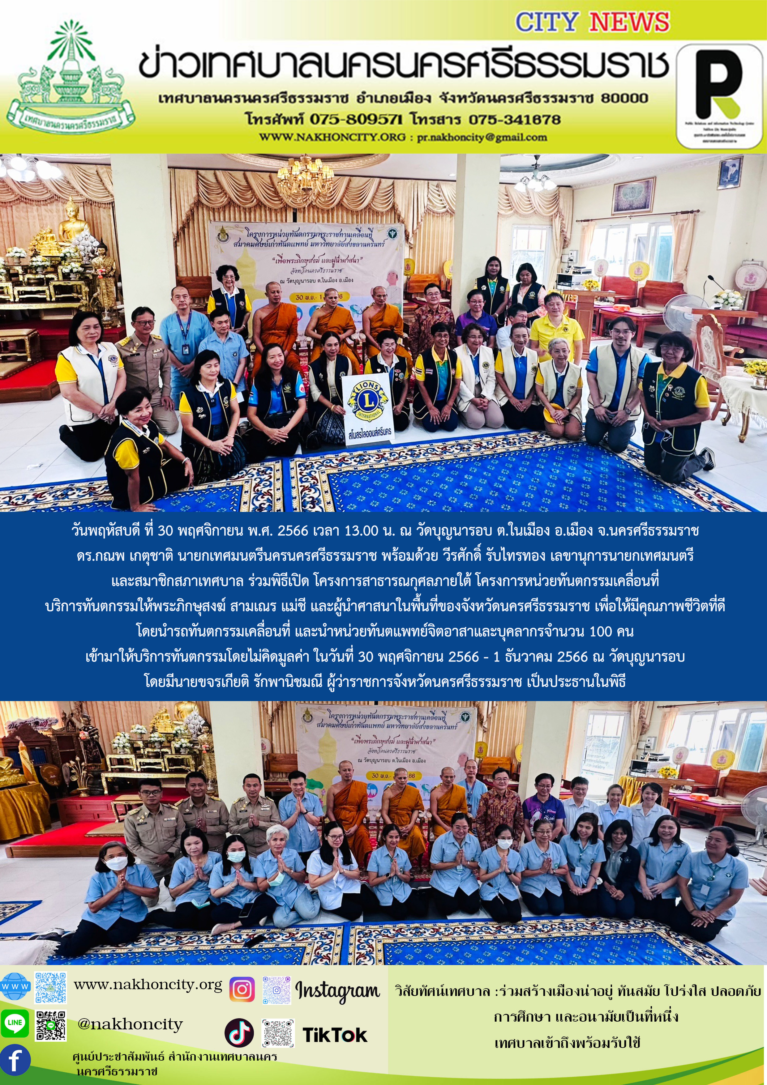 ดร.กณพ เกตุชาติ นายกเทศมนตรีนครนครศรีธรรมราช ร่วมพิธีเปิด โครงการสาธารณกุศลภายใต้โครงการหน่วยทันตกรรมเคลื่อนที่ บริการทันตกรรมให้พระภิกษุสงฆ์ สามเณร แม่ชี และผู้นำศาสนาในพื้นที่ของจังหวัดนครศรีธรรมราช |