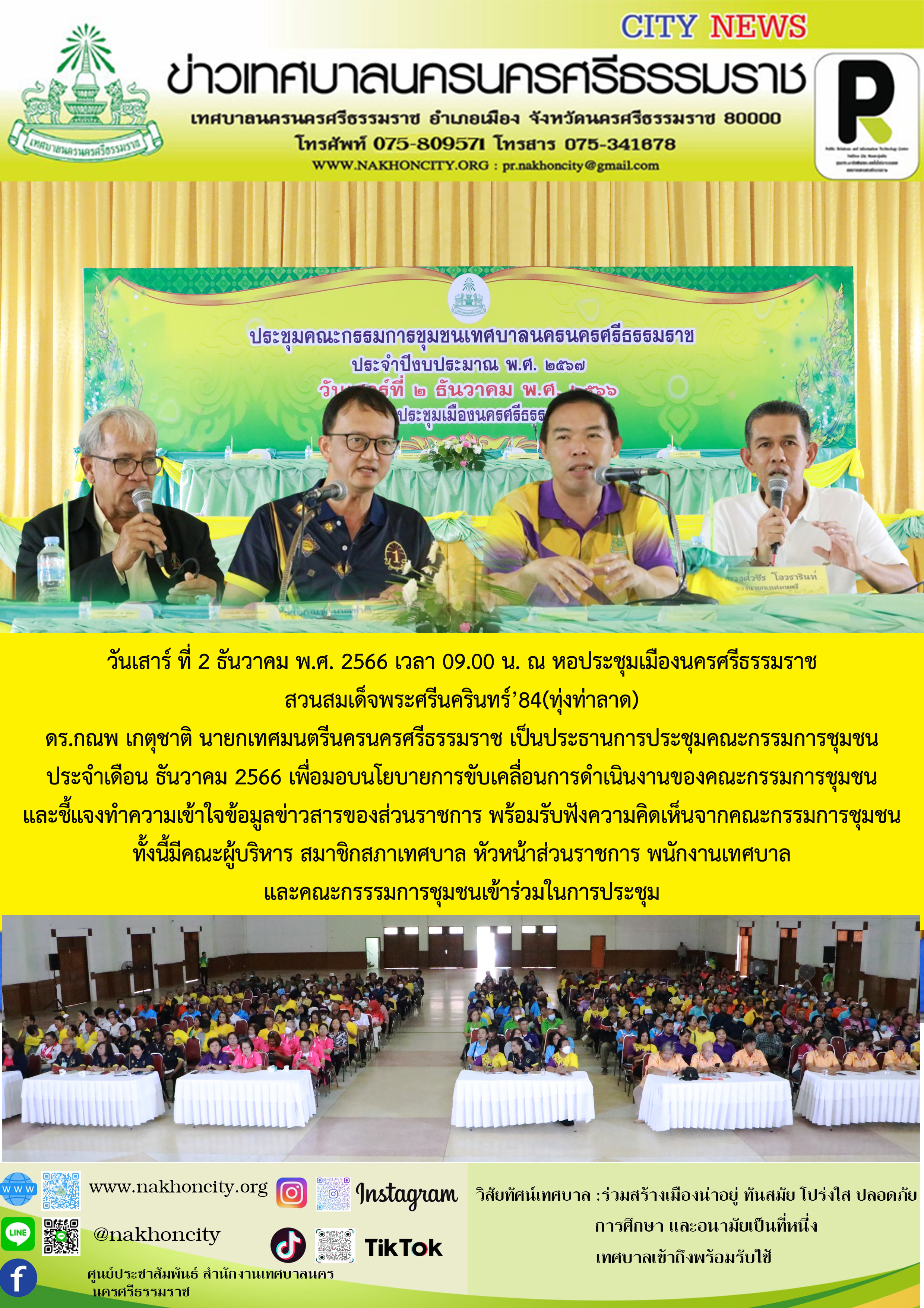 ดร.กณพ เกตุชาติ นายกเทศมนตรีนครนครศรีธรรมราช เป็นประธานการประชุมคณะกรรมการชุมชน ประจำเดือนธันวาคม 2566 |