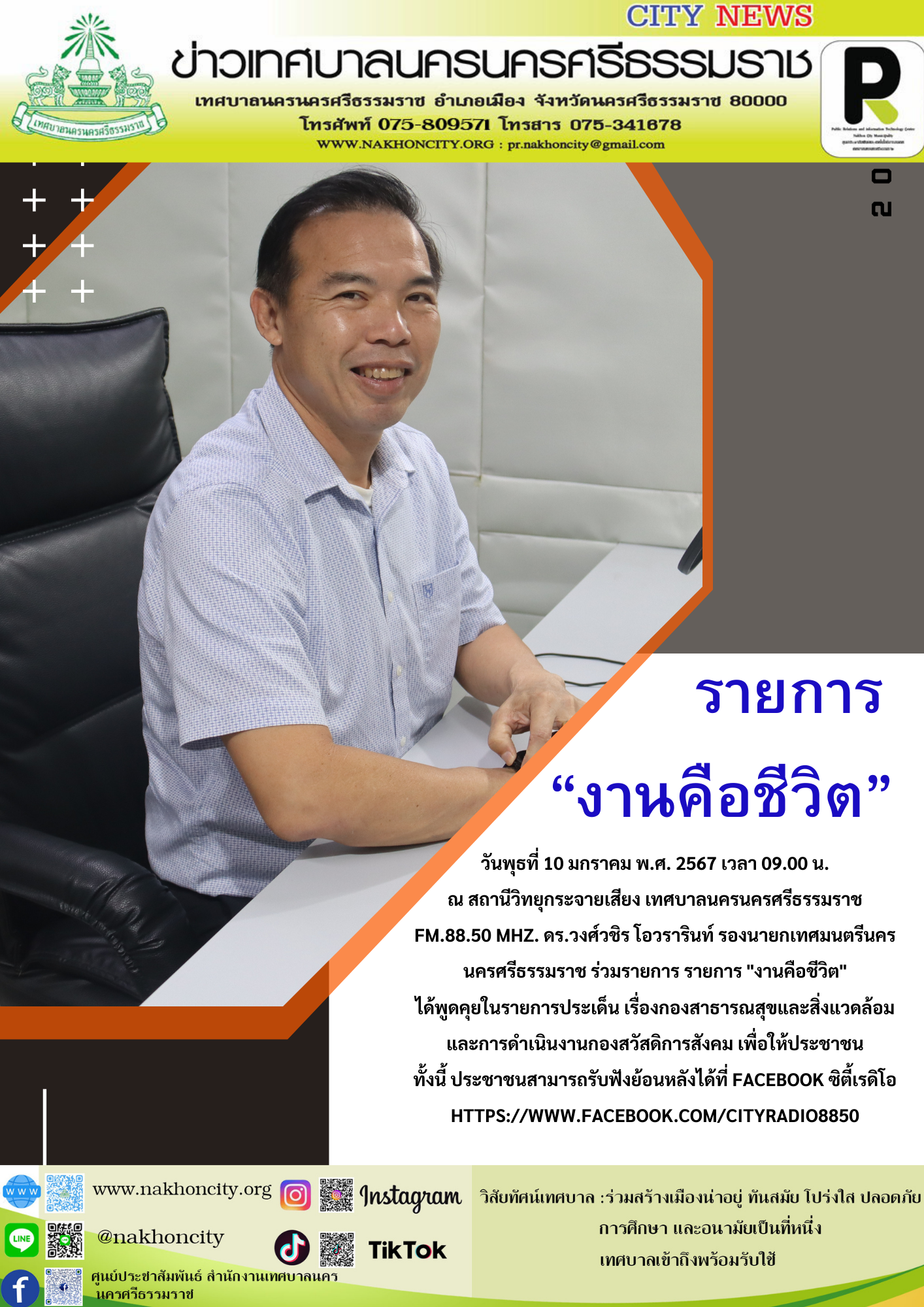 ดร.วงศ์วชิร โอวรารินท์ รองนายกเทศมนตรีนครนครศรีธรรมราช ร่วมรายการ รายการ "งานคือชีวิต" ทาง สถานีวิทยุกระจายเสียง เทศบาลนครนครศรีธรรมราช FM.88.50 MHz. |