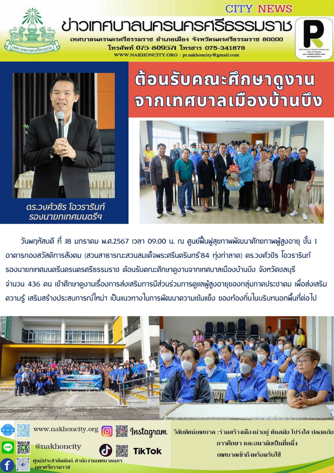 ดร.วงศ์วชิร โอวรารินท์ รองนายกเทศมนตรีนครนครศรีธรรมราช ต้อนรับคณะศึกษาดูงานจากเทศบาลเมืองบ้านบึง จังหวัดชลบุรี |