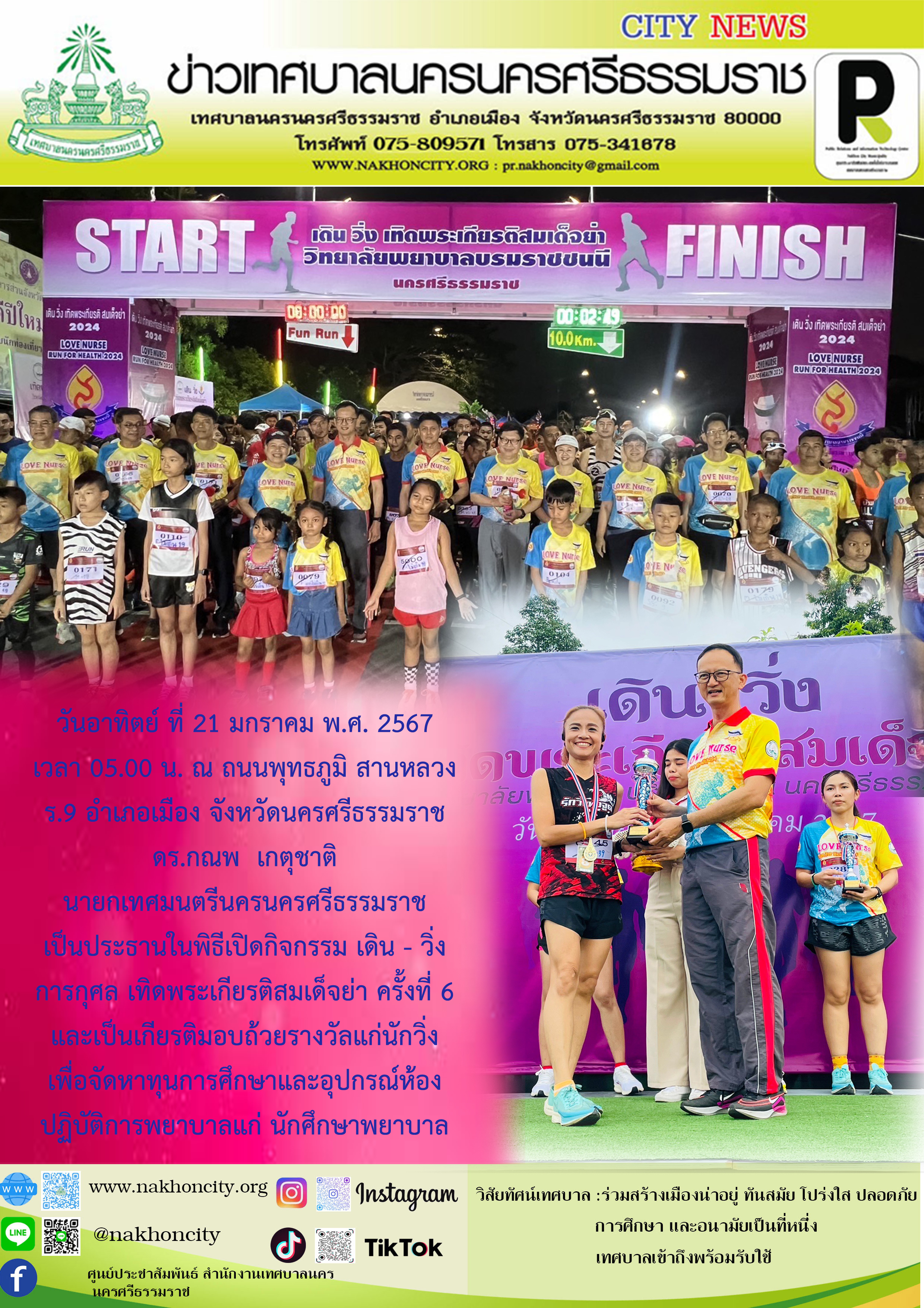 ดร.กณพ เกตุชาติ นายกเทศมนตรีนครนครศรีธรรมราช เป็นประธานในพิธีเปิดกิจกรรม เดิน - วิ่ง การกุศล เทิดพระเกียรติสมเด็จย่า ครั้งที่ 6 |