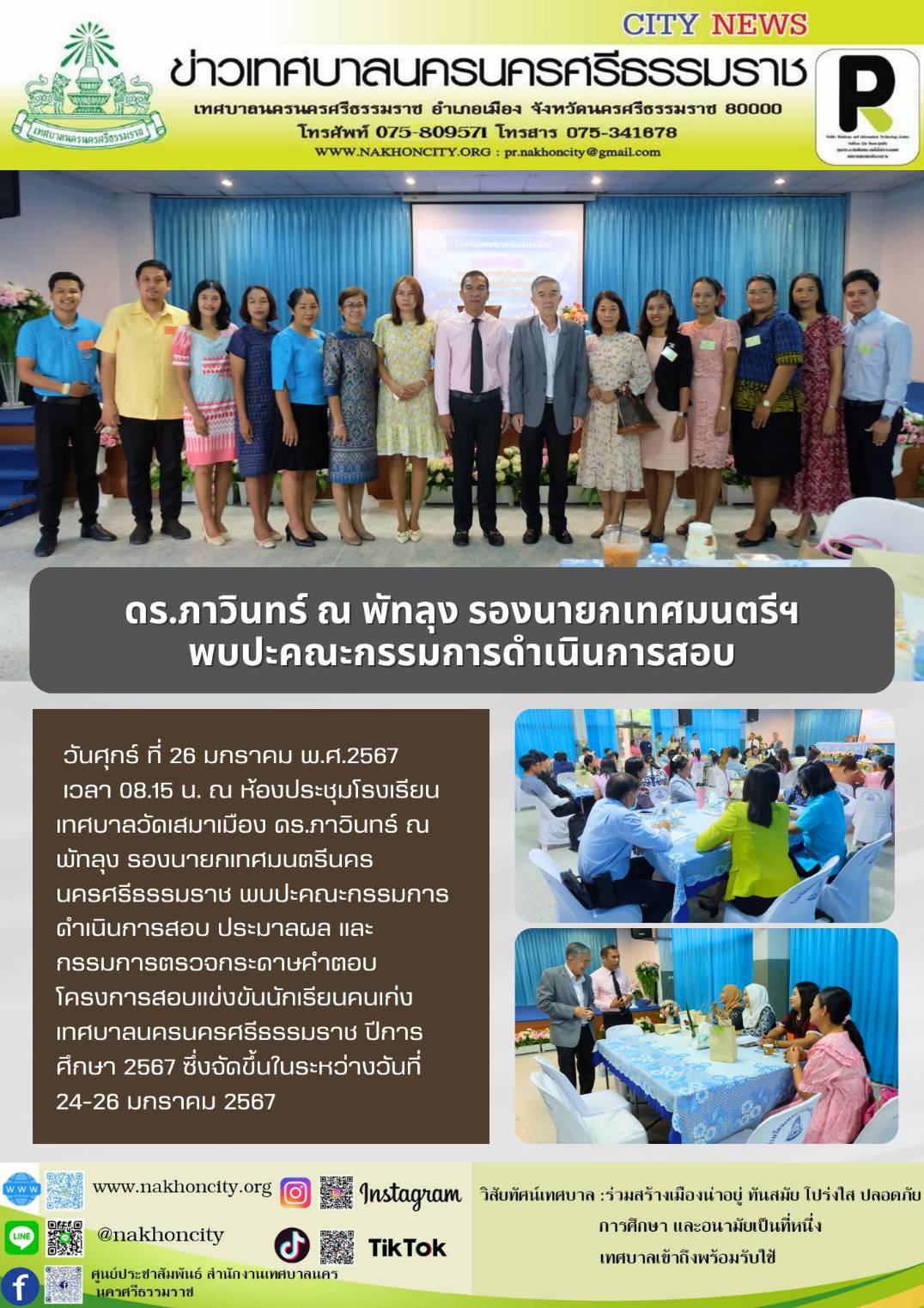 ดร.ภาวินทร์ ณ พัทลุง รองนายกเทศมนตรีนครนครศรีธรรมราช พบปะคณะกรรมการดำเนินการสอบ โครงการสอบแข่งขันนักเรียนคนเก่ง |