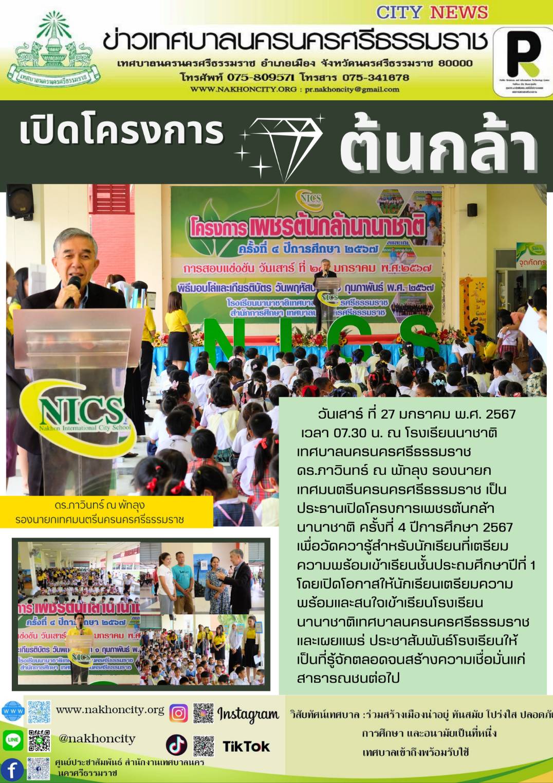 ดร.ภาวินทร์ ณ พัทลุง รองนายกเทศมนตรีนครนครศรีธรรมราช เป็นประธานเปิดโครงการเพชรต้นกล้านานาชาติ ครั้งที่ 4 ปีการศึกษา 2567 |