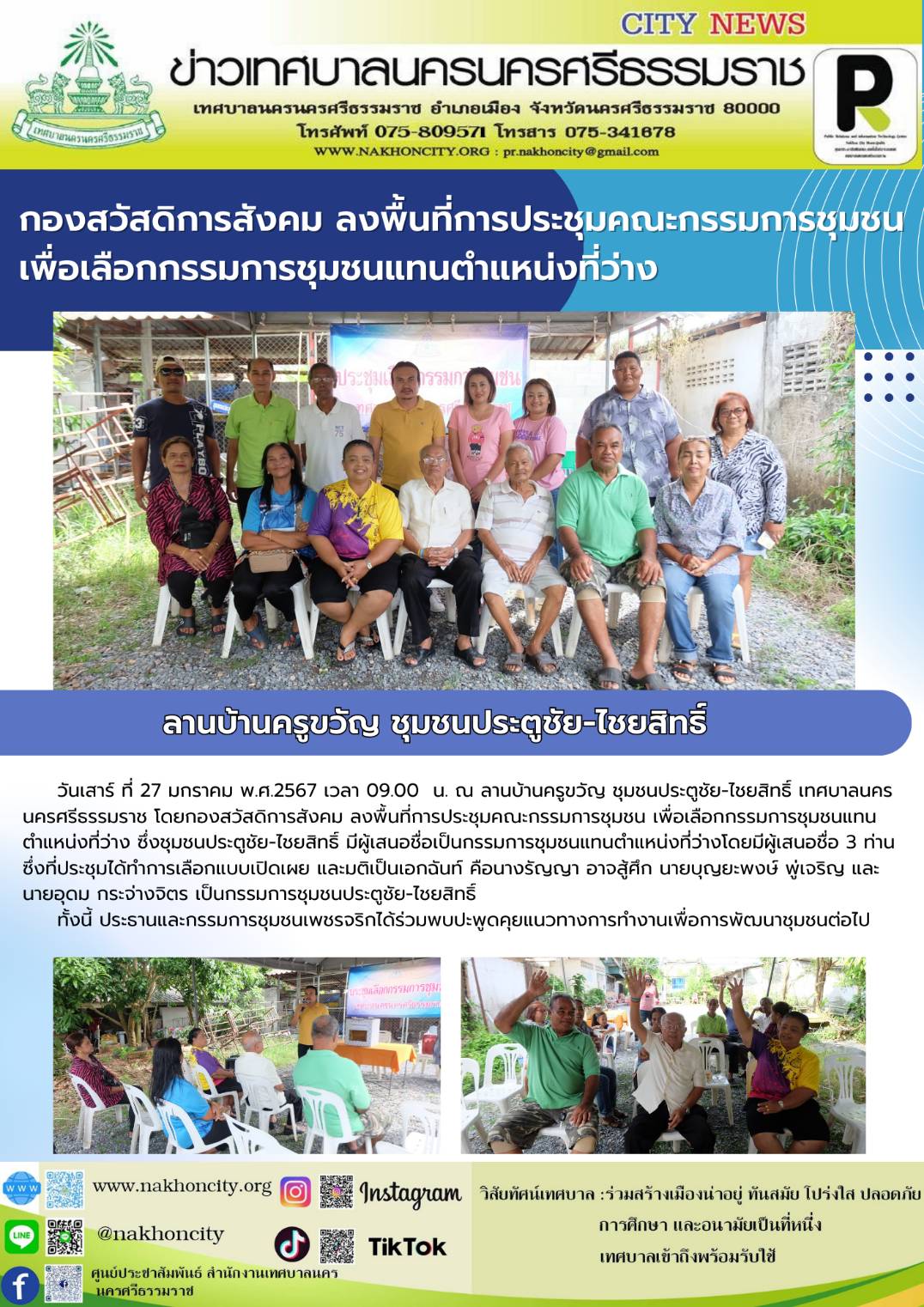 เทศบาลนครนครศรีธรรมราช โดยกองสวัสดิการสังคม ลงพื้นที่การประชุมคณะกรรมการชุมชน เพื่อเลือกกรรมการชุมชนแทนตำแหน่งที่ว่าง ชุมชนประตูชัย-ไชยสิทธิ์ |