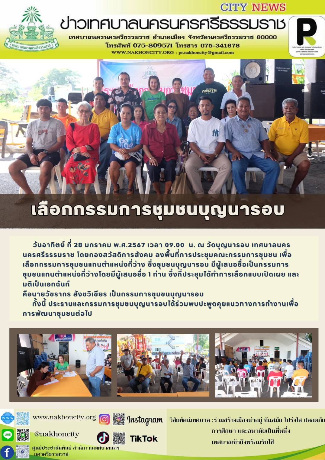 เทศบาลนครนครศรีธรรมราช โดยกองสวัสดิการสังคม ลงพื้นที่การประชุมคณะกรรมการชุมชน เพื่อเลือกกรรมการชุมชนแทนตำแหน่งที่ว่าง ชุมชนบุญนารอบ |