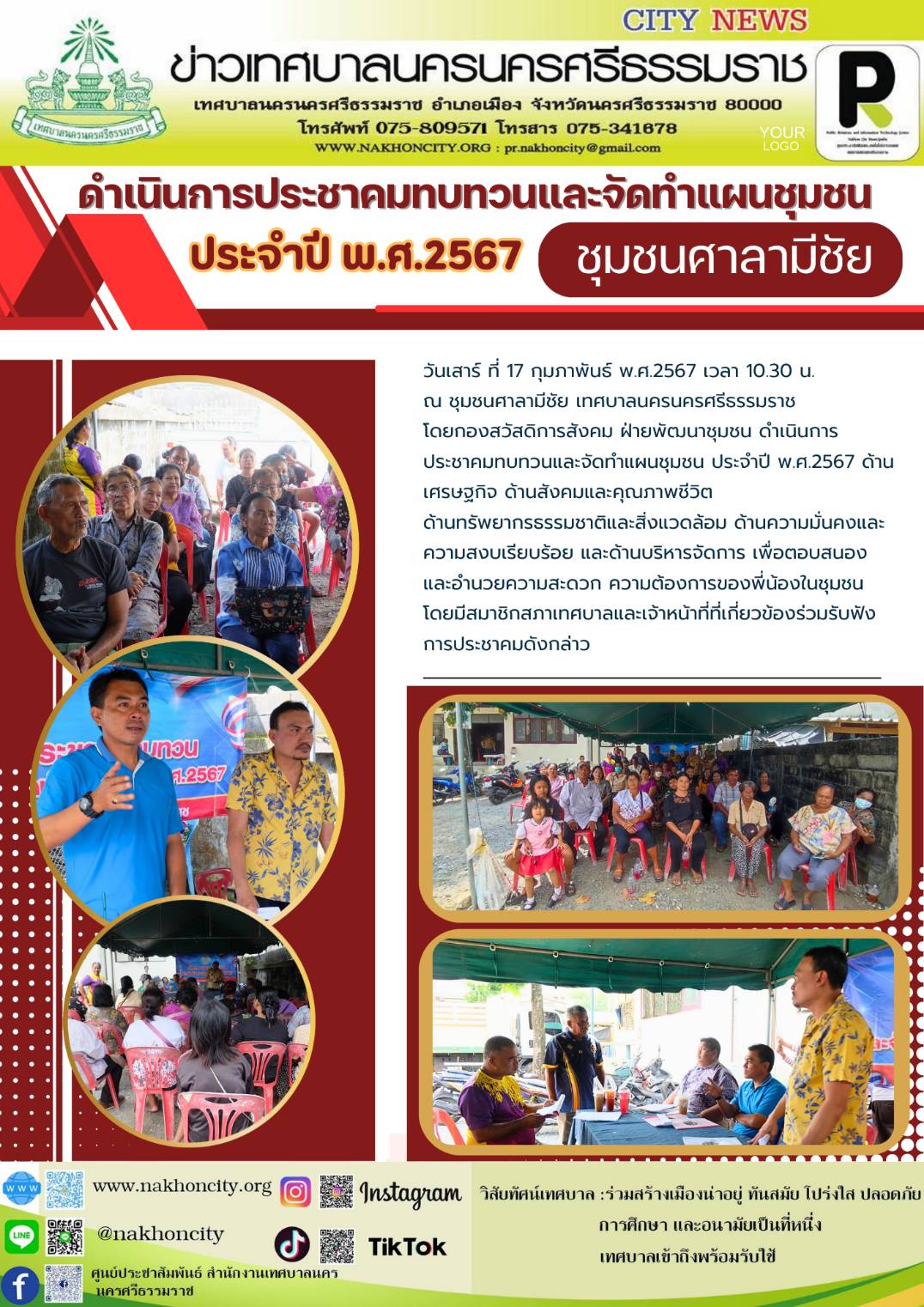 เทศบาลนครนครศรีธรรมราช โดยกองสวัสดิการสังคม ฝ่ายพัฒนาชุมชน ดำเนินการประชาคมทบทวนและจัดทำแผนชุมชน ประจำปี พ.ศ.2567 (ชุมชนศาลามีชัย) |