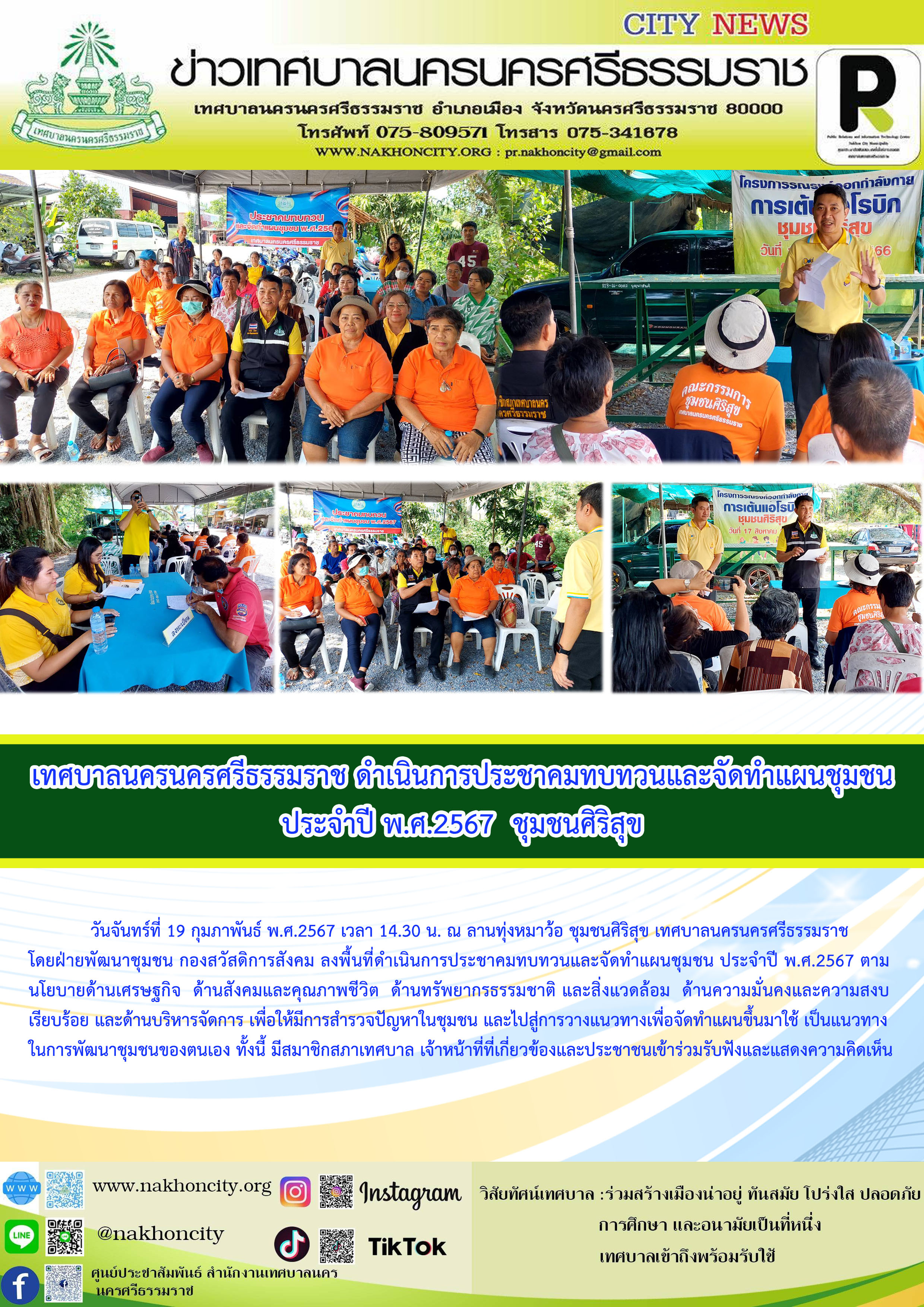 เทศบาลนครนครศรีธรรมราช ดำเนินการประชาคมทบทวนและจัดทำแผนชุมชน ประจำปี พ.ศ.2567 ชุมชนศิริสุข |