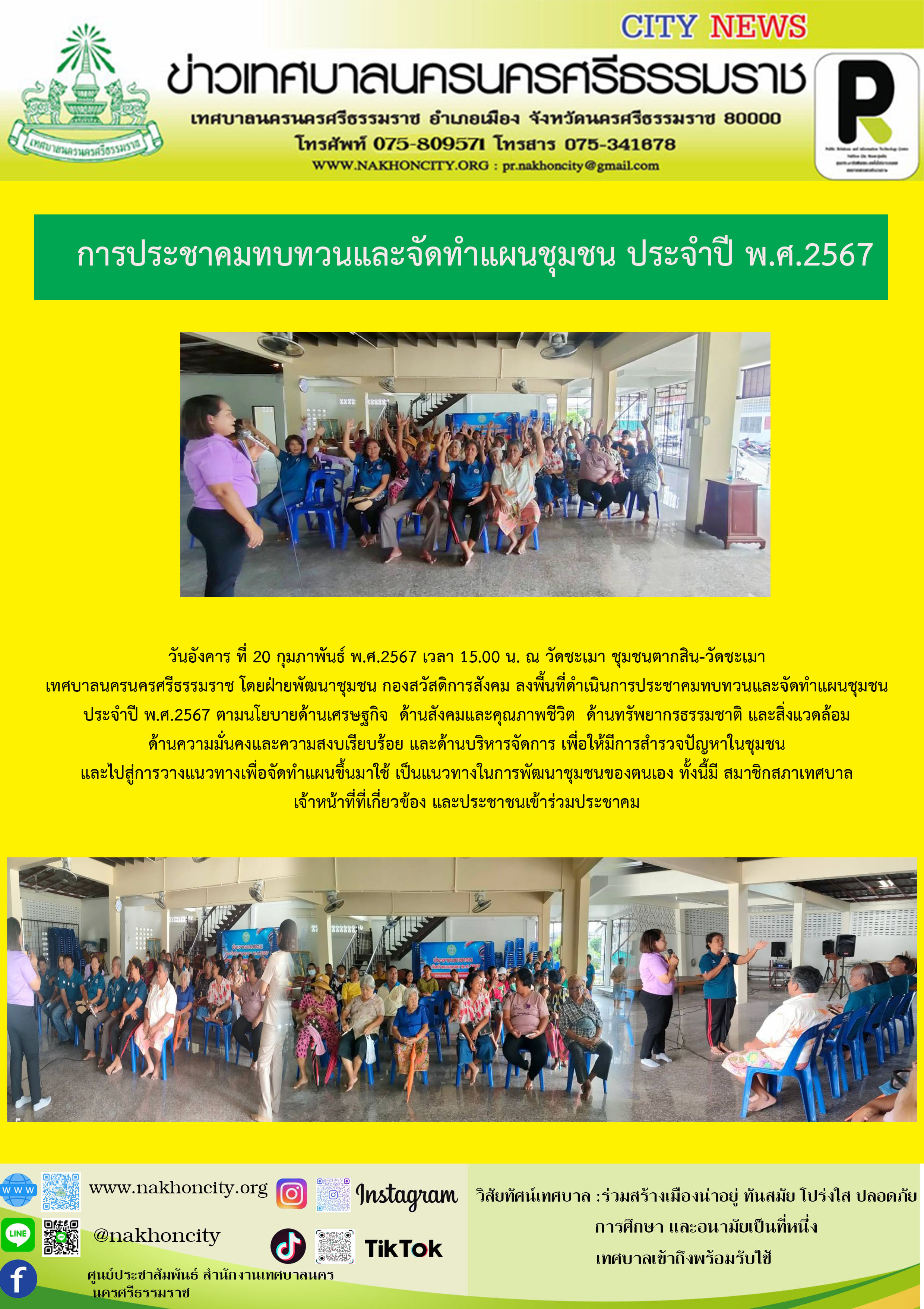 เทศบาลนครนครศรีธรรมราช ลงพื้นที่ดำเนินการประชาคมทบทวนและจัดทำแผนชุมชน ประจำปี พ.ศ.2567 |