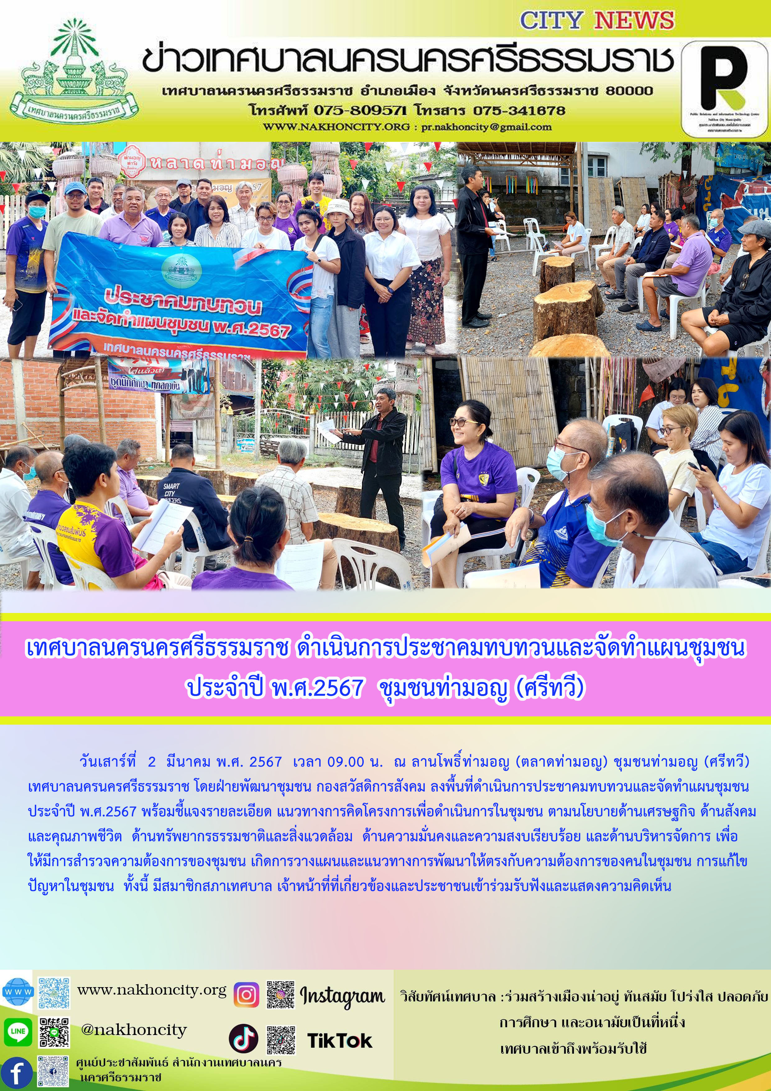 เทศบาลนครนครศรีธรรมราช ดำเนินการประชาคมทบทวนและจัดทำแผนชุมชน ประจำปี พ.ศ.2567 ชุมชนท่ามอญ (ศรีทวี) |