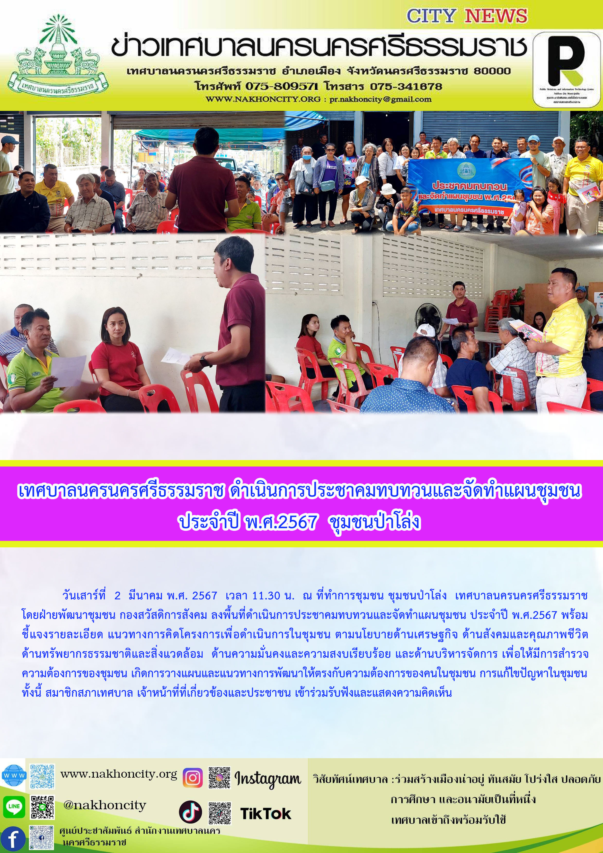 เทศบาลนครนครศรีธรรมราช ดำเนินการประชาคมทบทวนและจัดทำแผนชุมชน ประจำปี พ.ศ.2567 ชุมชนป่าโล่ง |
