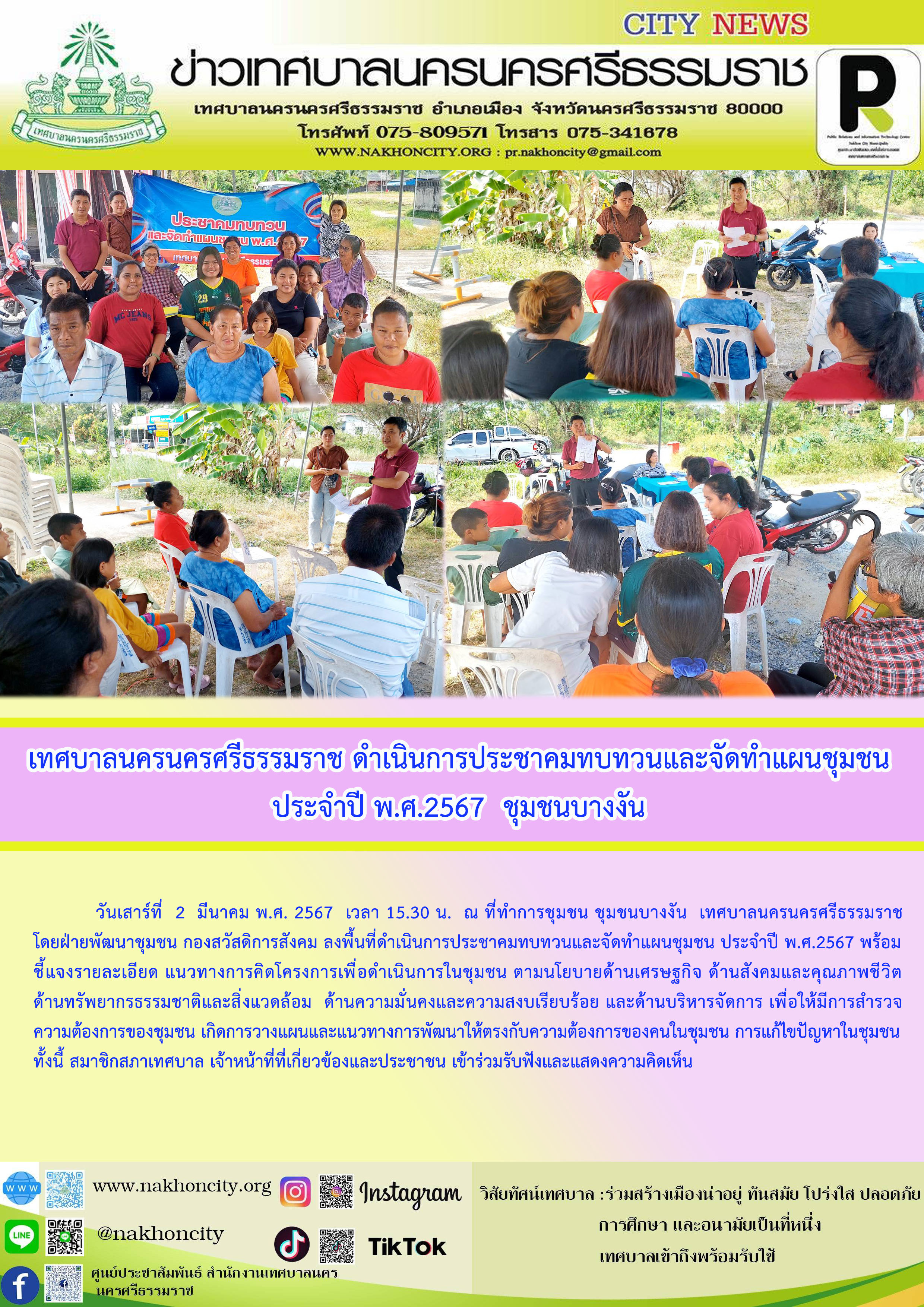 เทศบาลนครนครศรีธรรมราช ดำเนินการประชาคมทบทวนและจัดทำแผนชุมชน ประจำปี พ.ศ.2567 ชุมชนบางงัน |