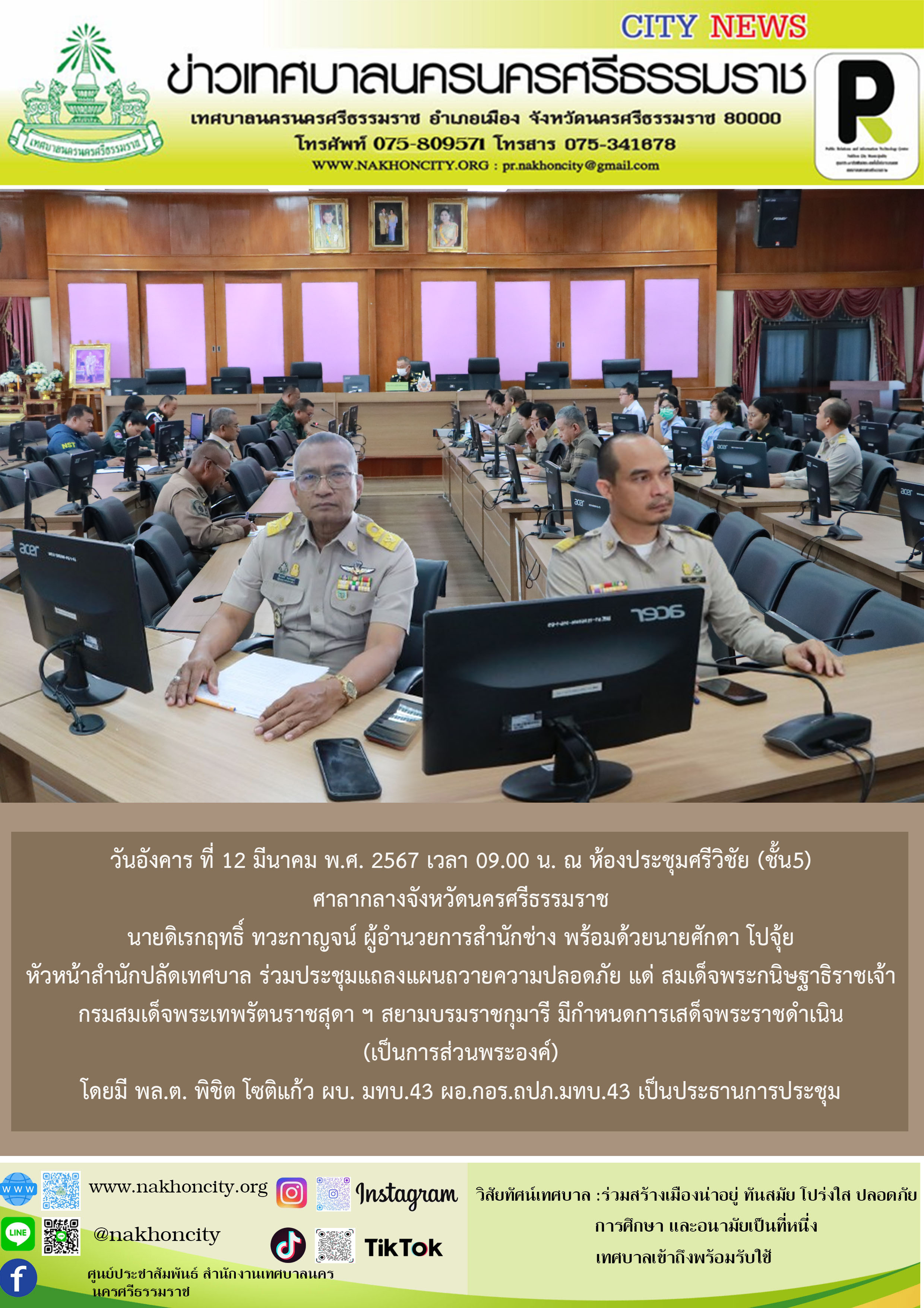 วันอังคาร ที่ 12 มีนาคม พ.ศ. 2567 เวลา 09.00 น. ณ ห้องประชุมศรีวิชัย (ชั้น5) ศาลากลางจังหวัดนครศรีธรรมราช