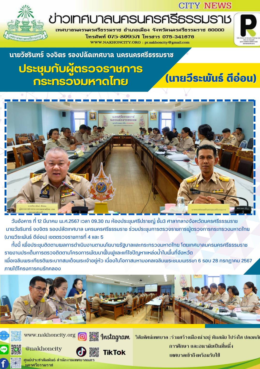วันอังคาร ที่ 12 มีนาคม พ.ศ.2567 เวลา 09.30 ณ ห้องประชุมศรีปราชญ์ ชั้น3 ศาลากลางจังหวัดนครศรีธรรมราช นายวัชรินทร์ จงจิตร รองปลัดเทศบาล นครนครศรีธรรมราช ร่วมประชุมการตรวจราชการผู้ตรวจการกระทรวงมหาดไทย (นายวีระพันธ์ ดีอ่อน) เขตตรวจราชการที่ 4 และ 5 |