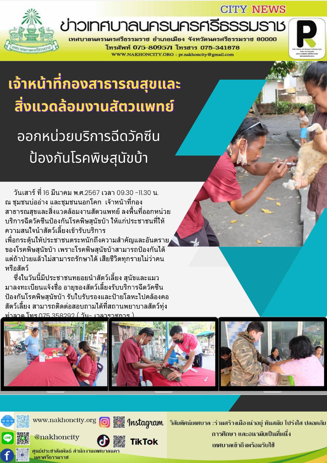 เจ้าหน้าที่กองสาธารณสุขและสิ่งแวดล้อมงานสัตวแพทย์ ลงพื้นที่ออกหน่วยบริการฉีดวัคซีนป้องกันโรคพิษสุนัขบ้า |