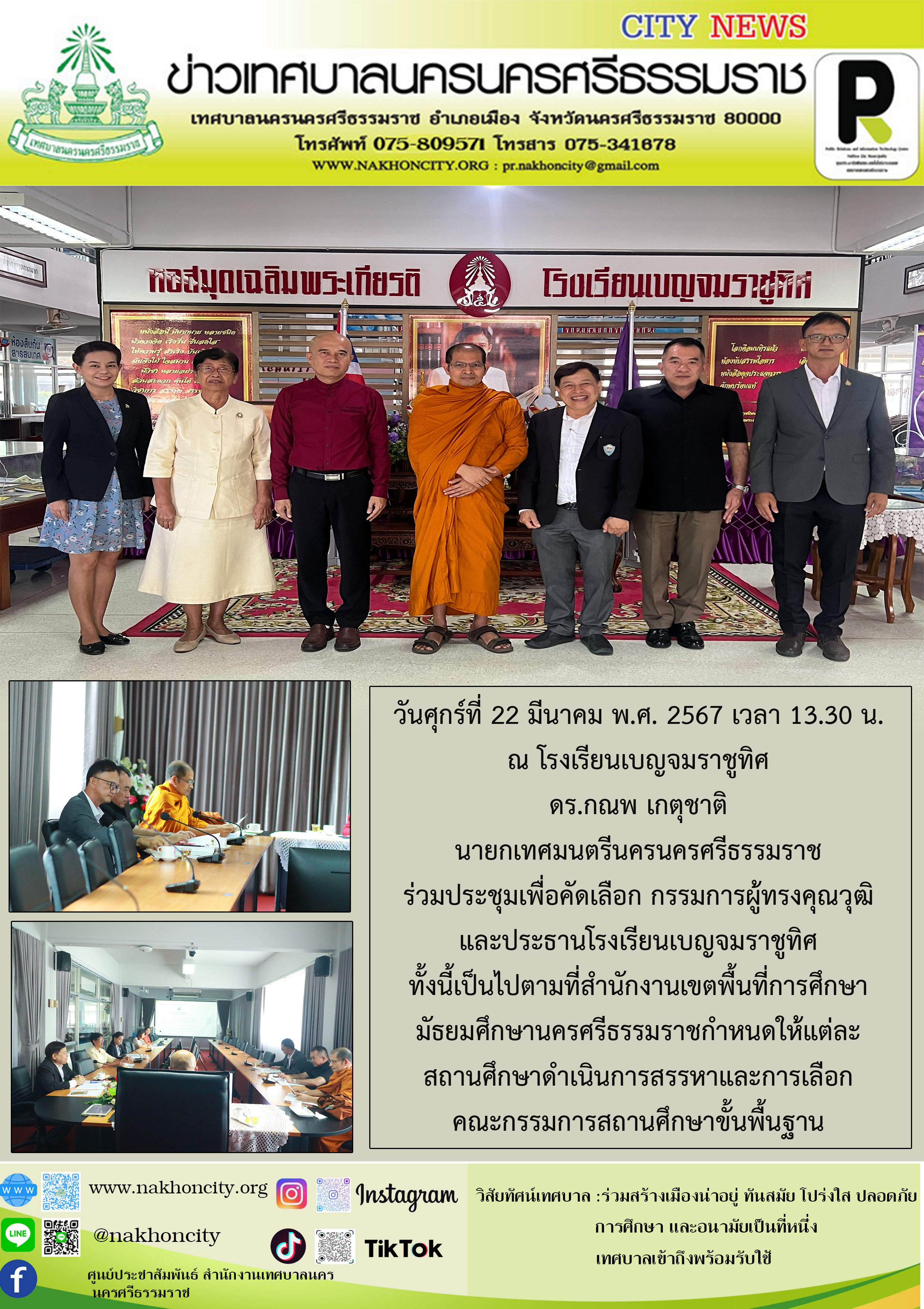 ดร.กณพ เกตุชาติ นายกเทศมนตรีนครนครศรีธรรมราช ร่วมประชุมเพื่อคัดเลือก กรรมการผู้ทรงคุณวุฒิและประธานโรงเรียนเบญจมราชูทิศ |