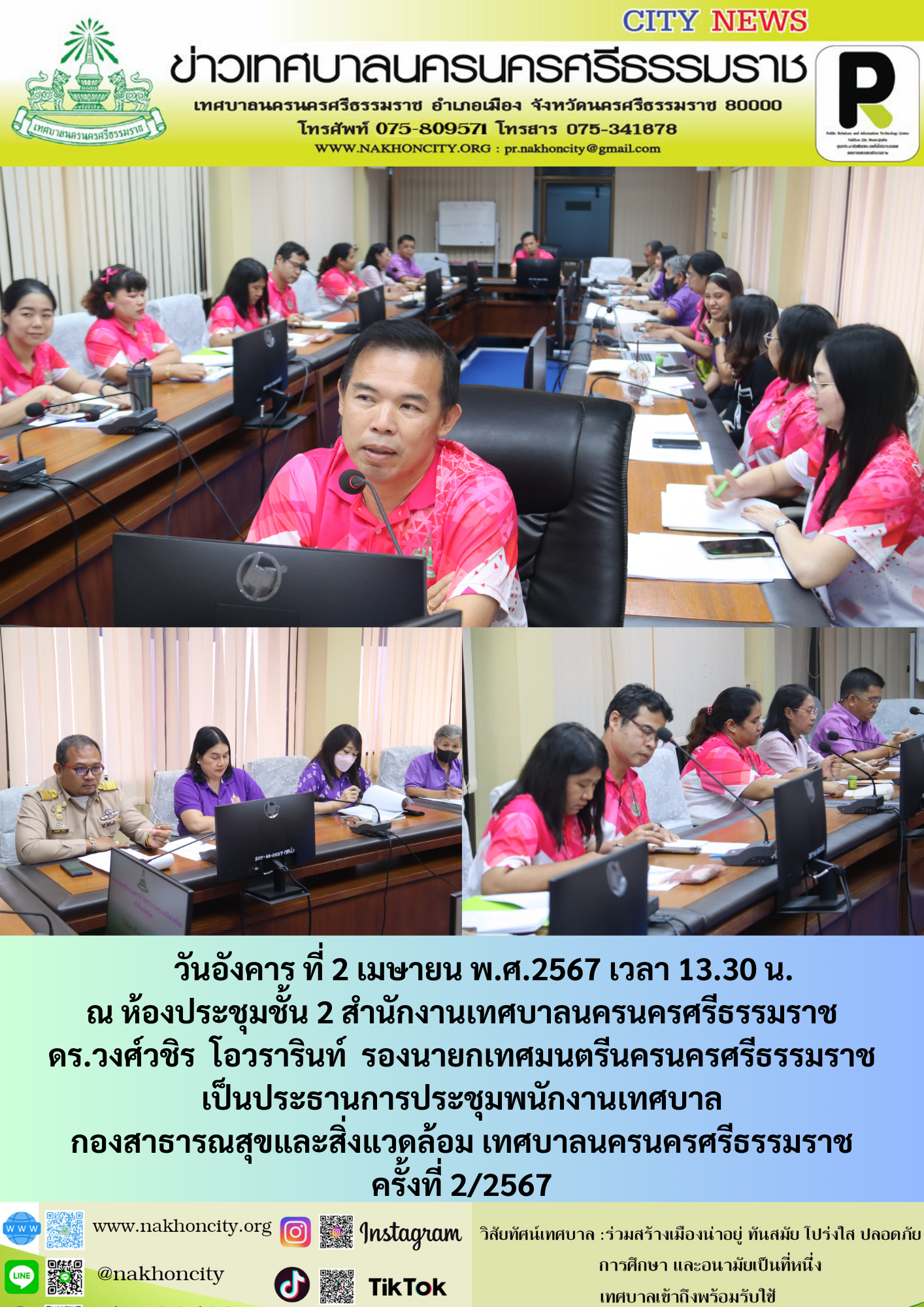 ดร.วงศ์วชิร โอวรารินท์ รองนายกเทศมนตรีนครนครศรีธรรมราช เป็นประธานการประชุมพนักงานเทศบาล กองสาธารณสุขและสิ่งแวดล้อม เทศบาลนครนครศรีธรรมราช ครั้งที่ 2/2567 |