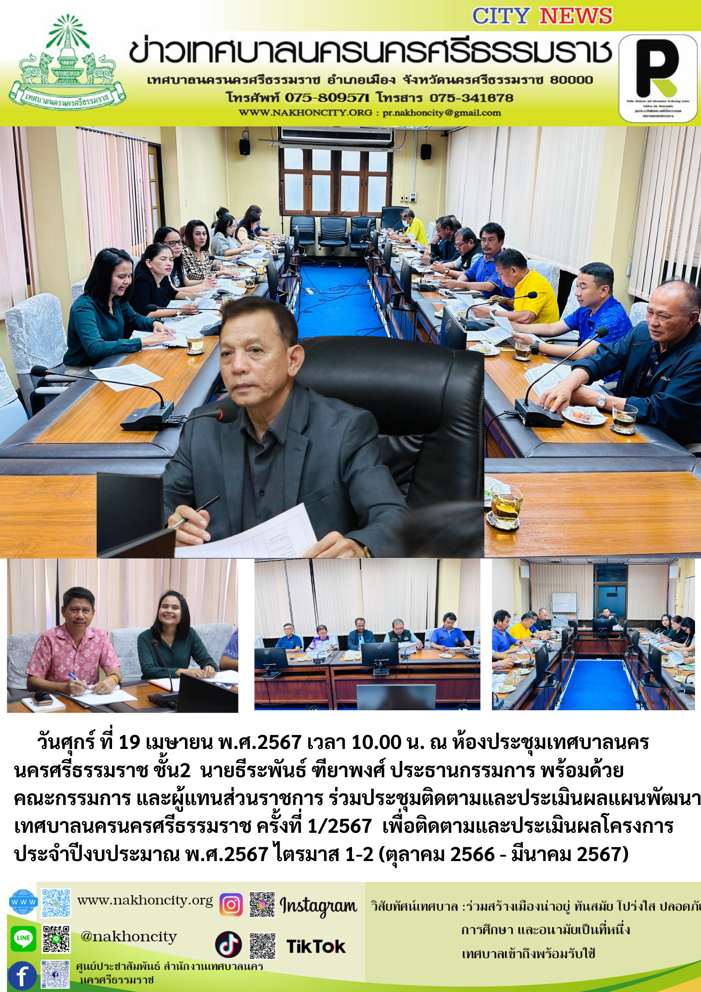 การประชุมติดตามและประเมินผลแผนพัฒนาเทศบาลนครนครศรีธรรมราช ครั้งที่ 1/2567 เพื่อติดตามและประเมินผลโครงการ ประจำปีงบประมาณ พ.ศ.2567 ไตรมาส 1-2 (ตุลาคม 2566 - มีนาคม 2567) |