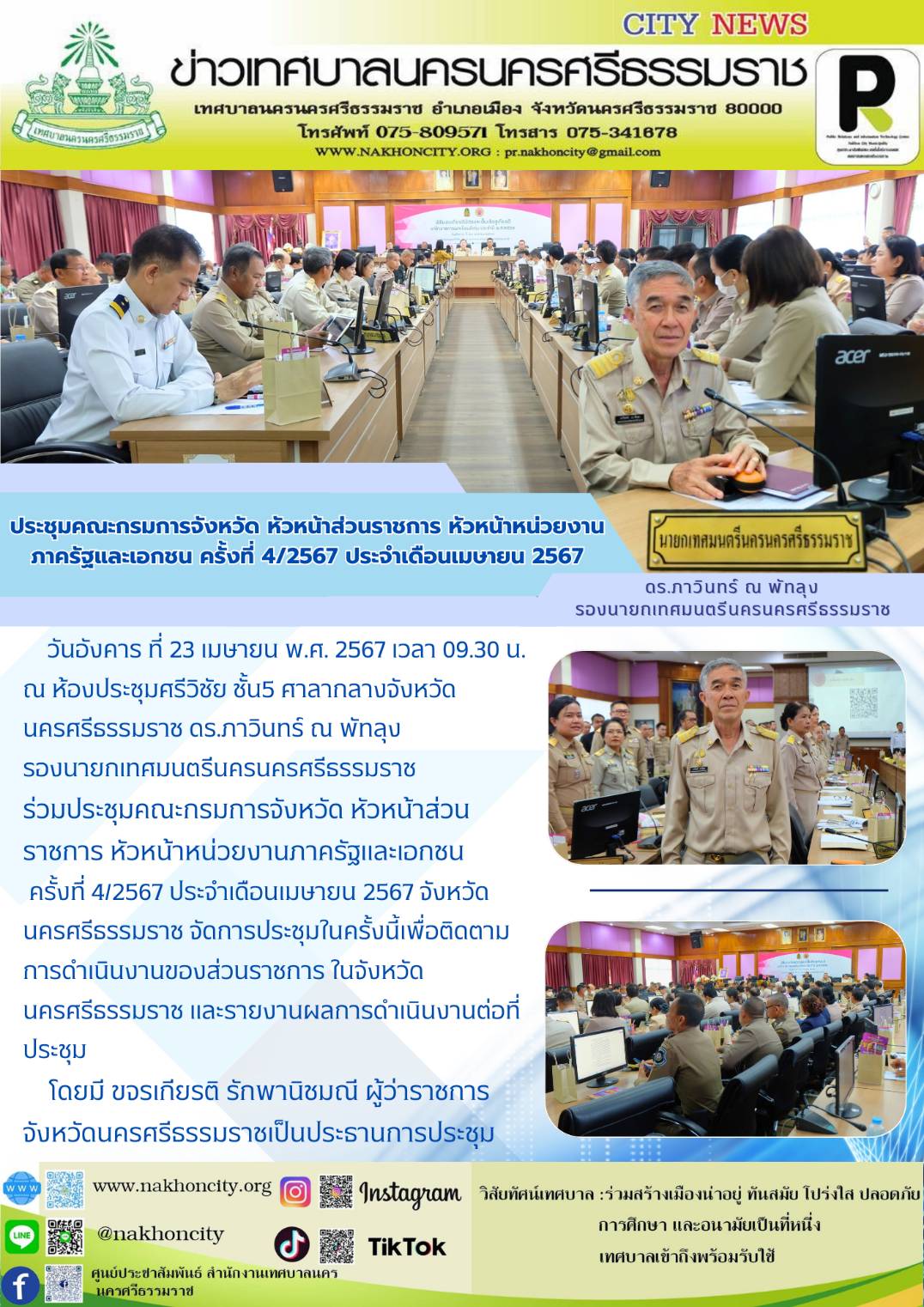 ดร.ภาวินทร์ ณ พัทลุงรองนายกเทศมนตรีนครนครศรีธรรมราช ร่วมประชุมคณะกรมการจังหวัด หัวหน้าส่วนราชการ หัวหน้าหน่วยงานภาครัฐและเอกชน ครั้งที่ 4/2567 ประจำเดือนเมษายน 2567 |