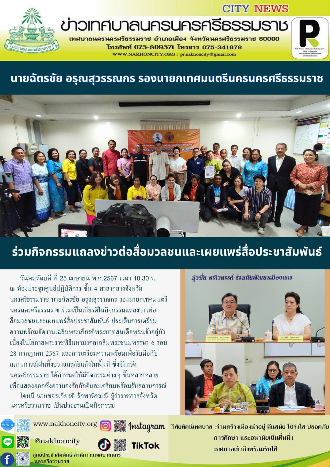 นายฉัตรชัย อรุณสุวรรณกร รองนายกเทศมนตรีนครนครศรีธรรมราช ร่วมเป็นเกียรติในกิจกรรมแถลงข่าวต่อสื่อมวลชนและเผยแพร่สื่อประชาสัมพันธ์ |