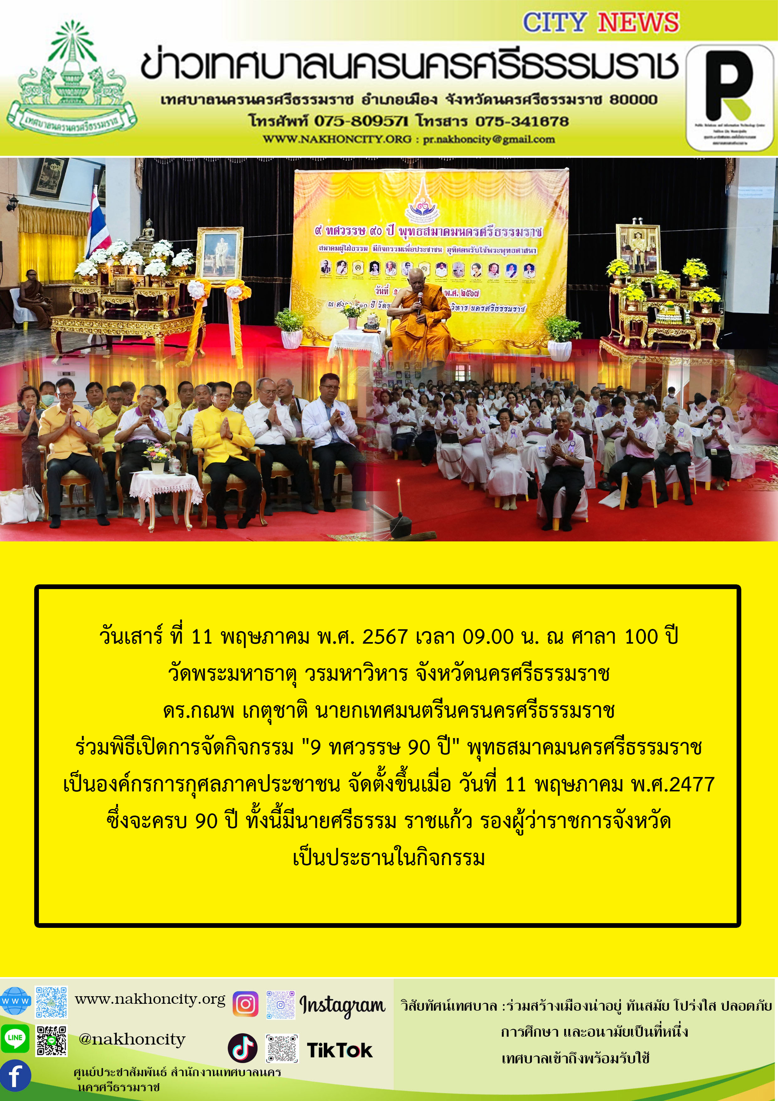 ดร.กณพ เกตุชาติ นายกเทศมนตรีนครนครศรีธรรมราชร่วมพิธีเปิดการจัดกิจกรรม "9 ทศวรรษ 90 ปี" พุทธสมาคมนครศรีธรรมราช |