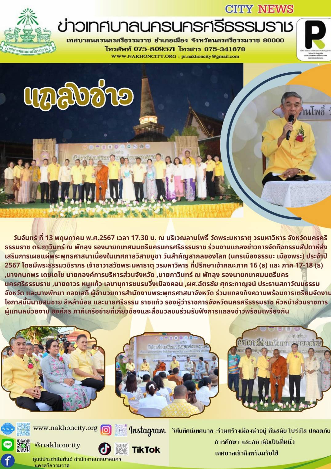 ดร.ภาวินทร์ ณ พัทลุง รองนายกเทศมนตรีนครนครศรีธรรมราช ร่วมงานแถลงข่าวการจัดกิจกรรมสัปดาห์ส่งเสริมการเผยแผ่พระพุทธศาสนาเนื่องในเทศกาลวิสาขบูชา |