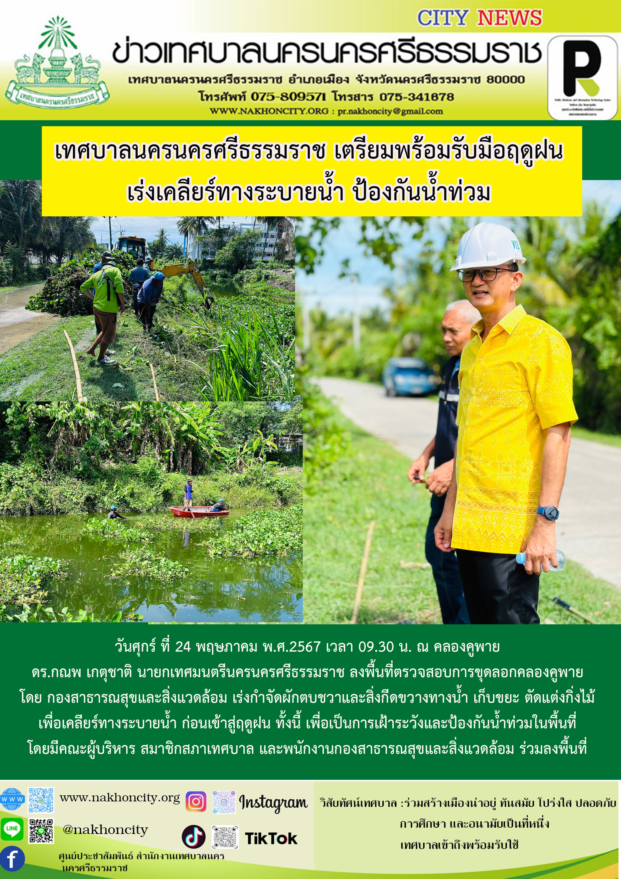 เทศบาลนครนครศรีธรรมราช เตรียมพร้อมรับมือฤดูฝน เร่งเคลียร์ทางระบายน้ำ ป้องกันน้ำท่วม |