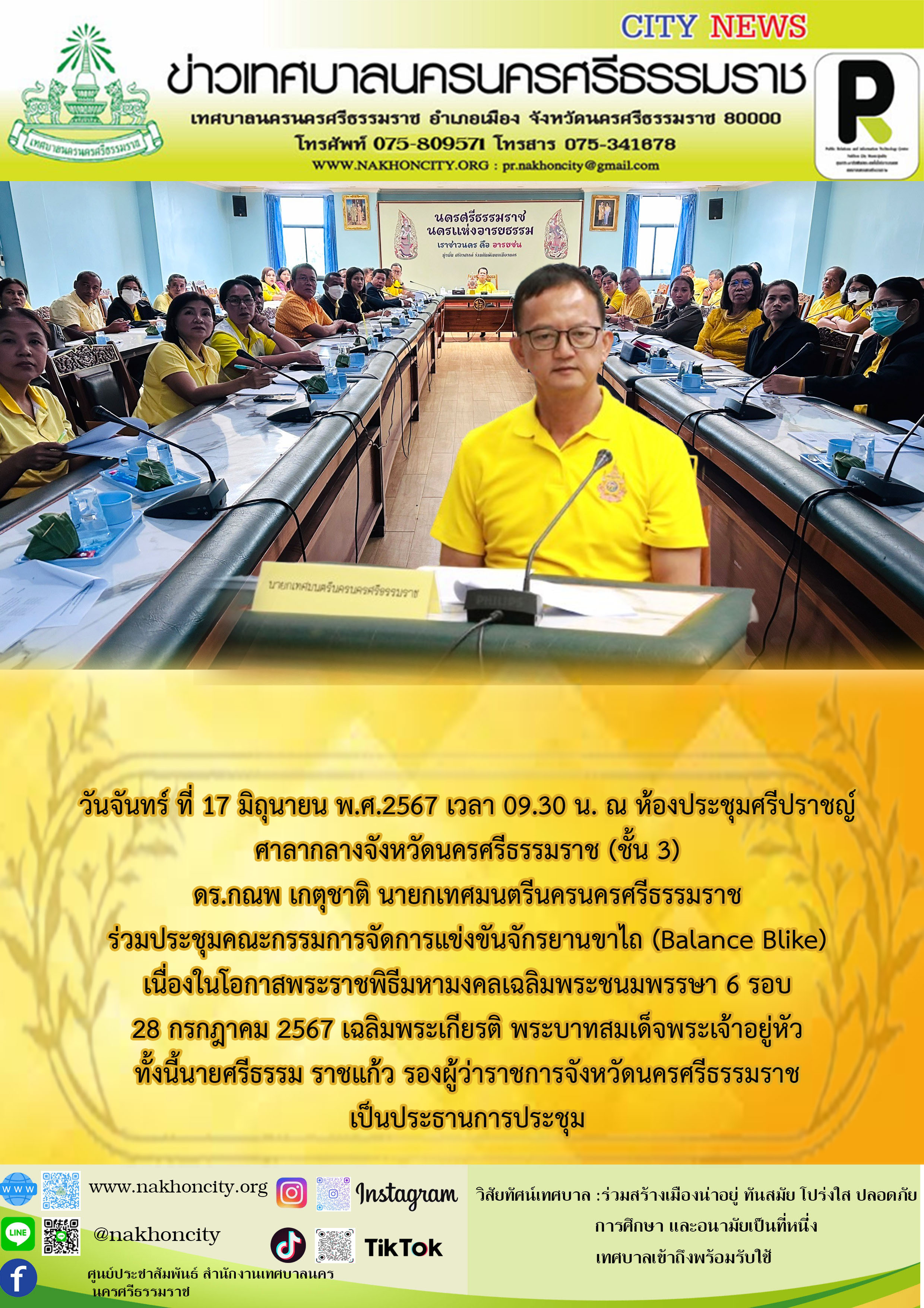 นายกเทศมนตรีนครนครศรีธรรมราช ร่วมประชุมคณะกรรมการจัดการแข่งขันจักรยานขาไถ (Balance Blike) |
