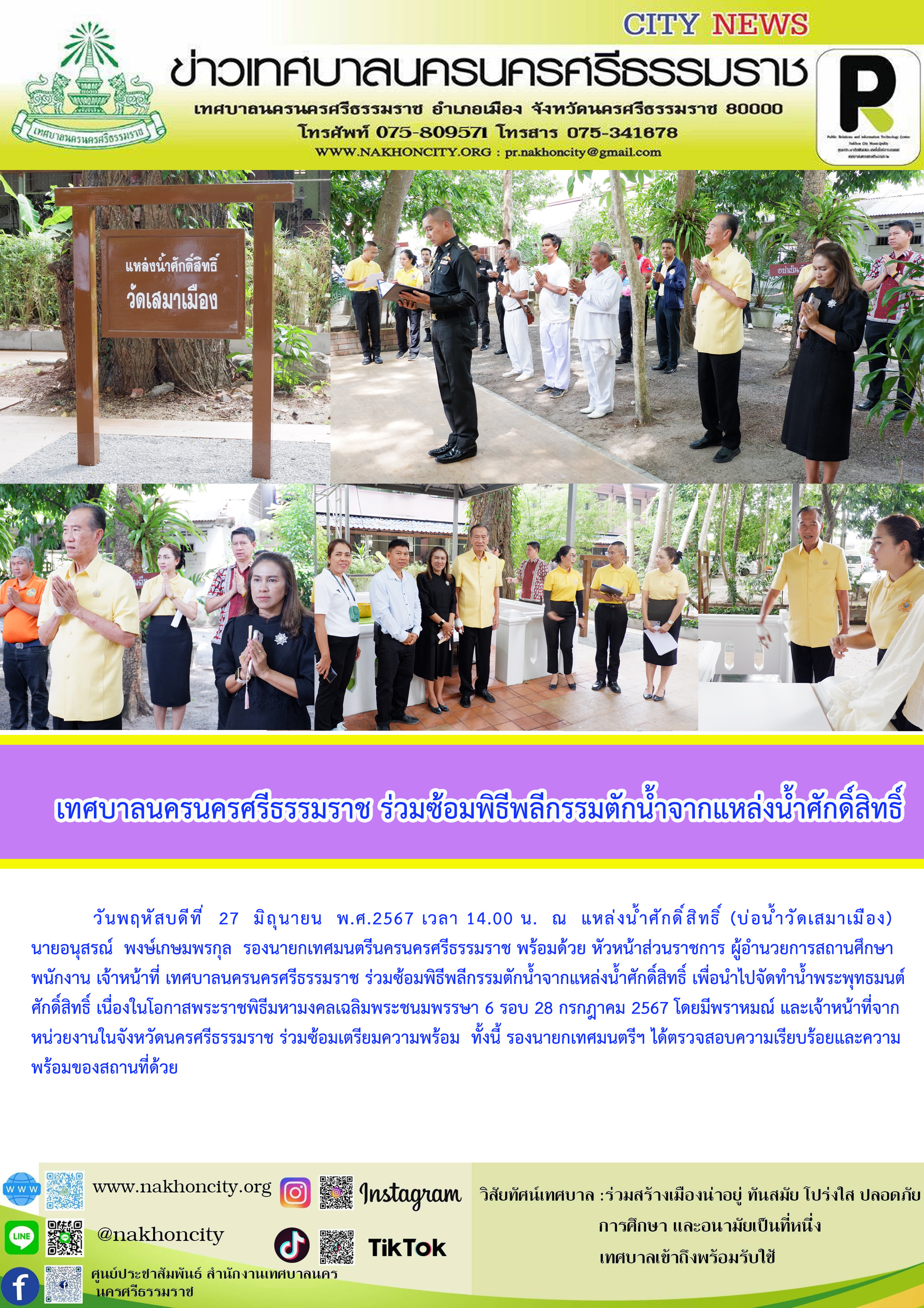 เทศบาลนครนครศรีธรรมราช ร่วมซ้อมพิธีพลีกรรมตักน้ำจากแหล่งน้ำศักดิ์สิทธิ์ |