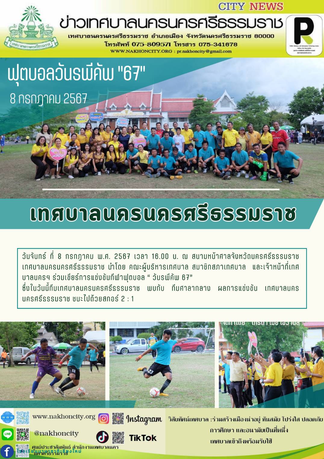 เทศบาลนครนครศรีธรรมราช ร่วมการแข่งขันกีฬาฟุตบอลวันรพีคัพ "67" |