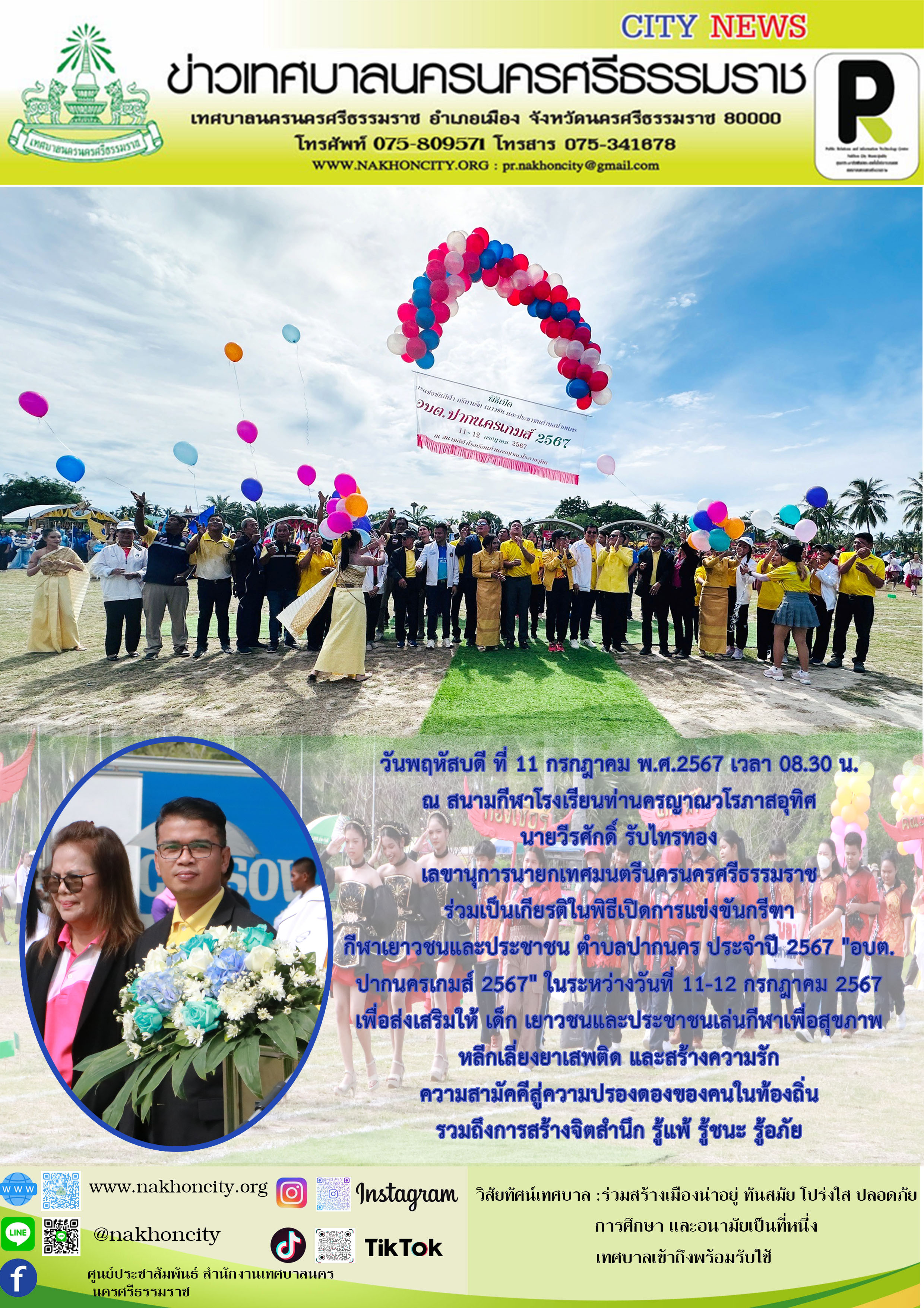 เลขานุการนายกเทศมนตรีนครนครศรีธรรมราช ร่วมเป็นเกียรติในพิธีเปิดการแข่งขันกรีฑา กีฬาเยาวชนและประชาชน ตำบลปากนคร ประจำปี 2567 "อบต. ปากนครเกมส์ 2567" |