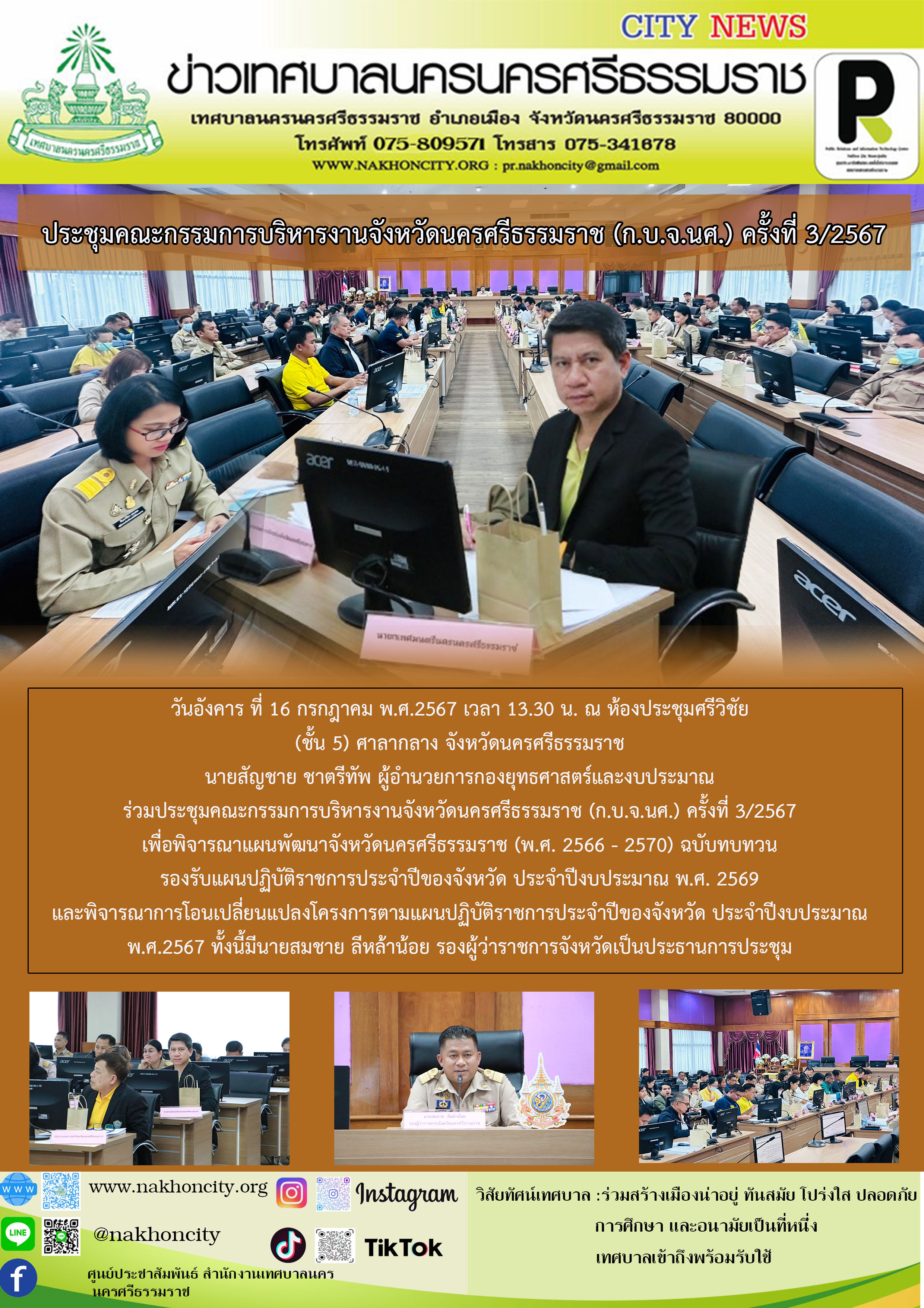 วันอังคาร ที่ 16 กรกฎาคม พ.ศ.2567 เวลา 13.30 น. ณ ห้องประชุมศรีวิชัย (ชั้น 5) ศาลากลาง จังหวัดนครศรีธรรมราช ภาพ//ข่าว//ไกรสิทธิ |