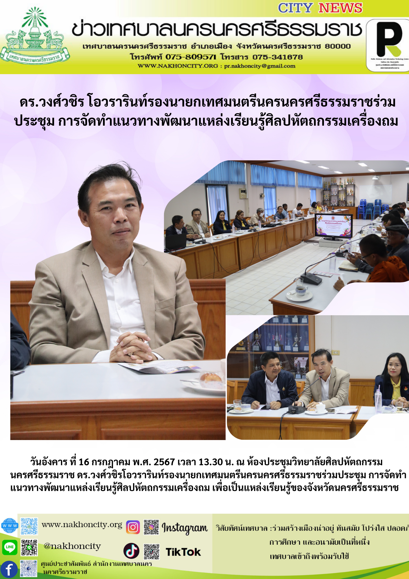 ดร.วงศ์วชิร โอวรารินท์ รองนายกเทศมนตรีนครนครศรีธรรมราช ร่วมประชุม การจัดทำแนวทางพัฒนาแหล่งเรียนรู้ศิลปหัตถกรรมเครื่องถม |