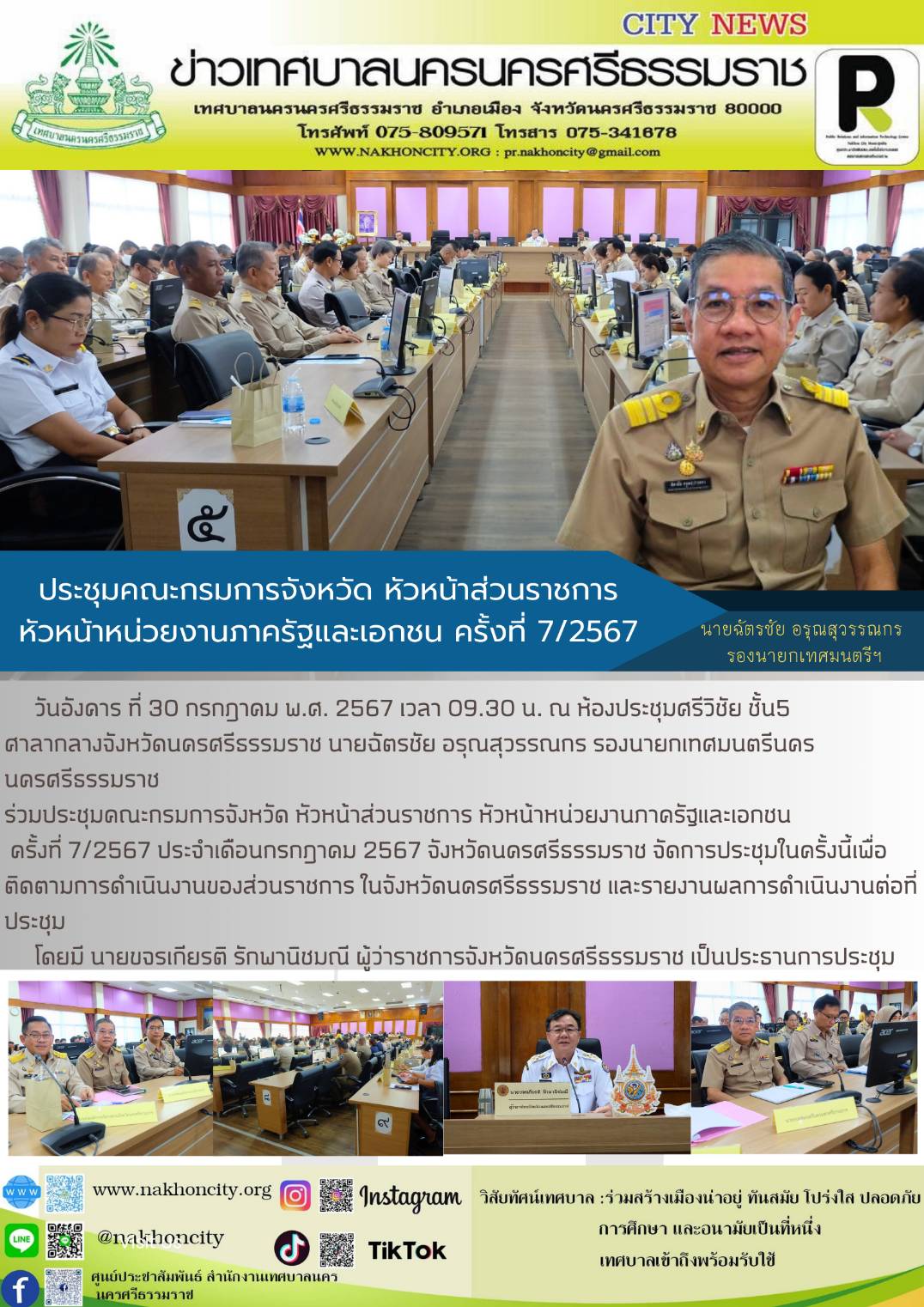 นายฉัตรชัย อรุณสุวรรณกร รองนายกเทศมนตรีนครนครศรีธรรมราช ร่วมประชุมคณะกรมการจังหวัด หัวหน้าส่วนราชการ หัวหน้าหน่วยงานภาครัฐและเอกชน ครั้งที่ 7/2567 |