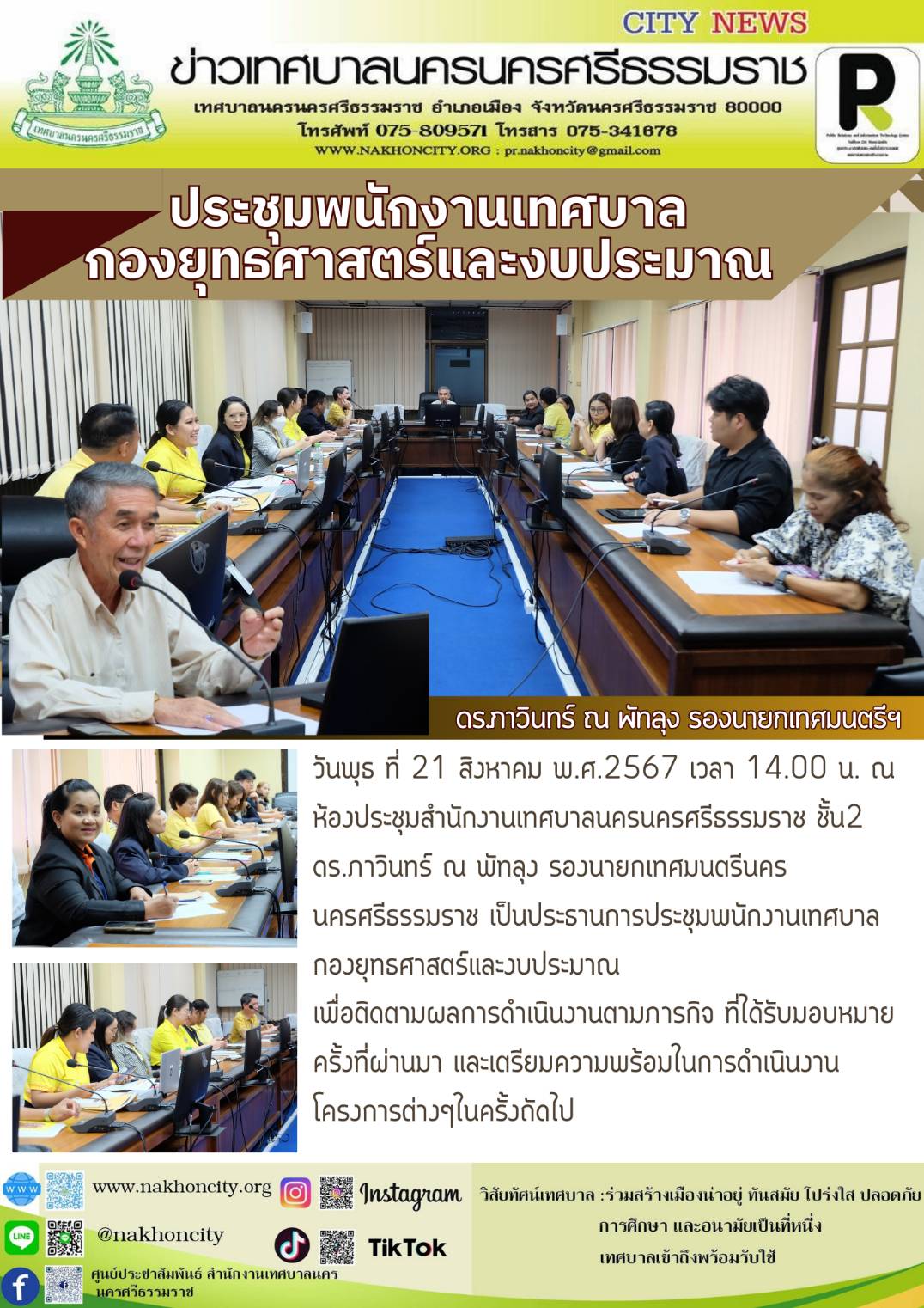 ดร.ภาวินทร์ ณ พัทลุง รองนายกเทศมนตรีนครนครศรีธรรมราช เป็นประธานการประชุมพนักงานเทศบาล กองยุทธศาสตร์และงบประมาณ |